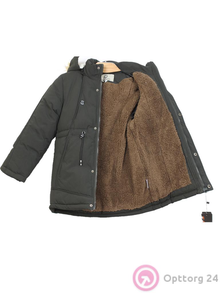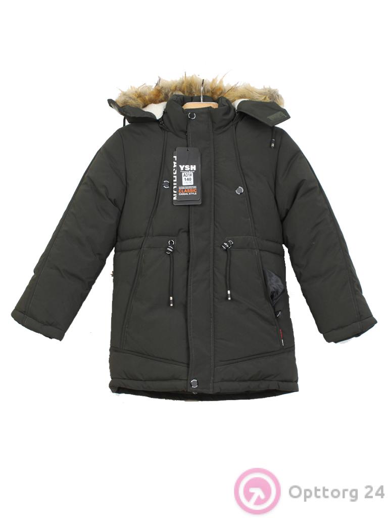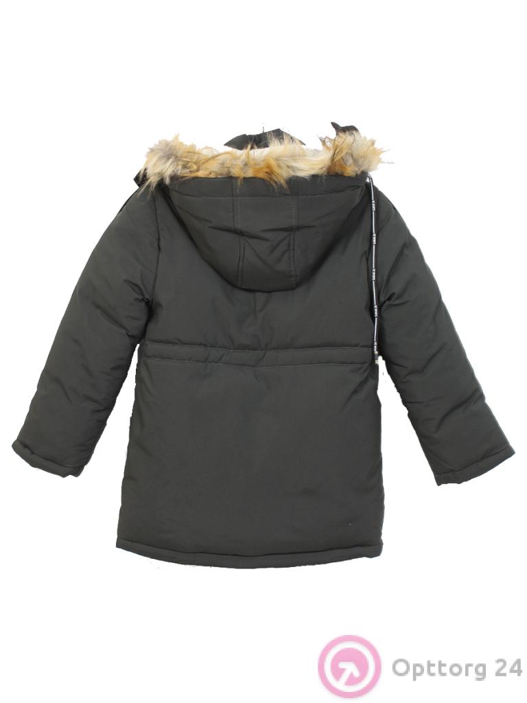 Пуховик для мальчика с подкладом зимний с натуральным мехом темного серого цвета оптом