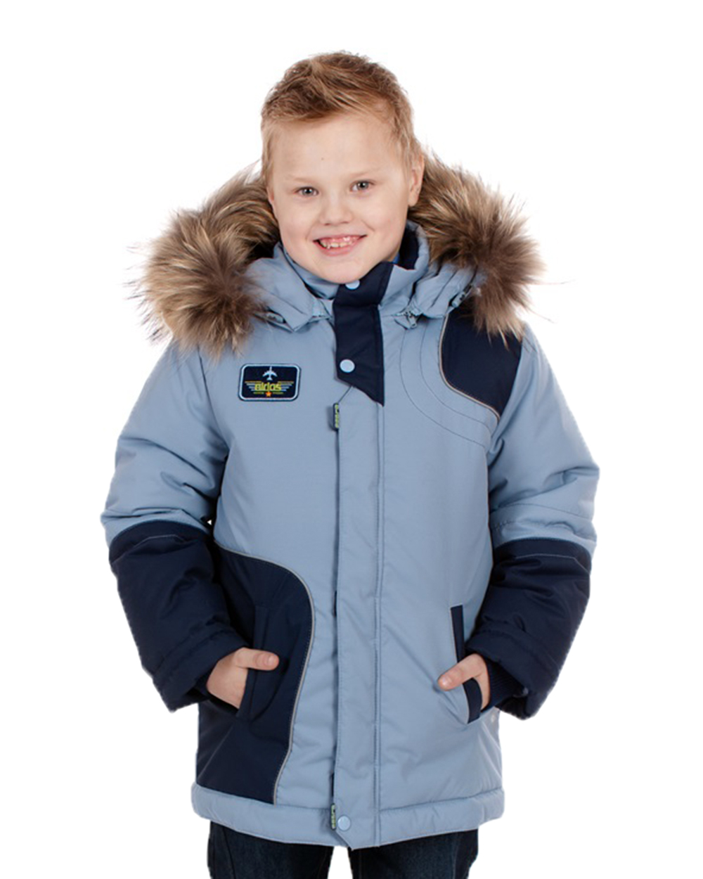 Пуховик для мальчика сине-голубая с эмблемой пилот оптом
