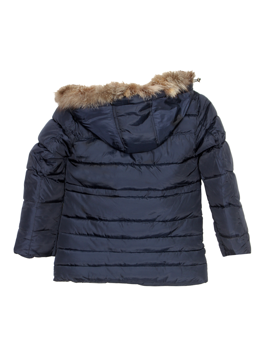 Практичный и модный подростковый пуховик темного цвета. Изделие имеет пояс н завязках, удобный капюшон, вместительные карманы и застежку молнию. Утеплен синтепоном, а так же оборудован натуральным мехом