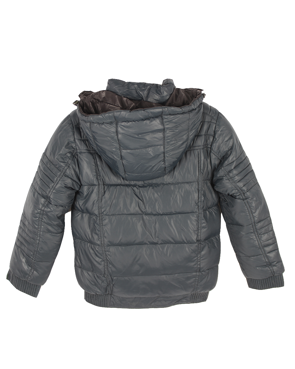Детская стеганная куртка черного цвета. Капюшон с кулиской для утягивания и лучшей ветрозащиты.