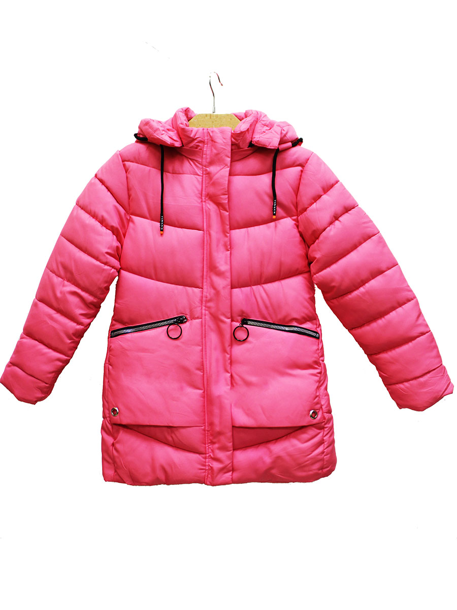 Пуховик зимний на девочку подростковый цвет розовый. Пуховик имеет два кармана на молнии и капюшон. Замок-молния. Температурный режим до -25-30.