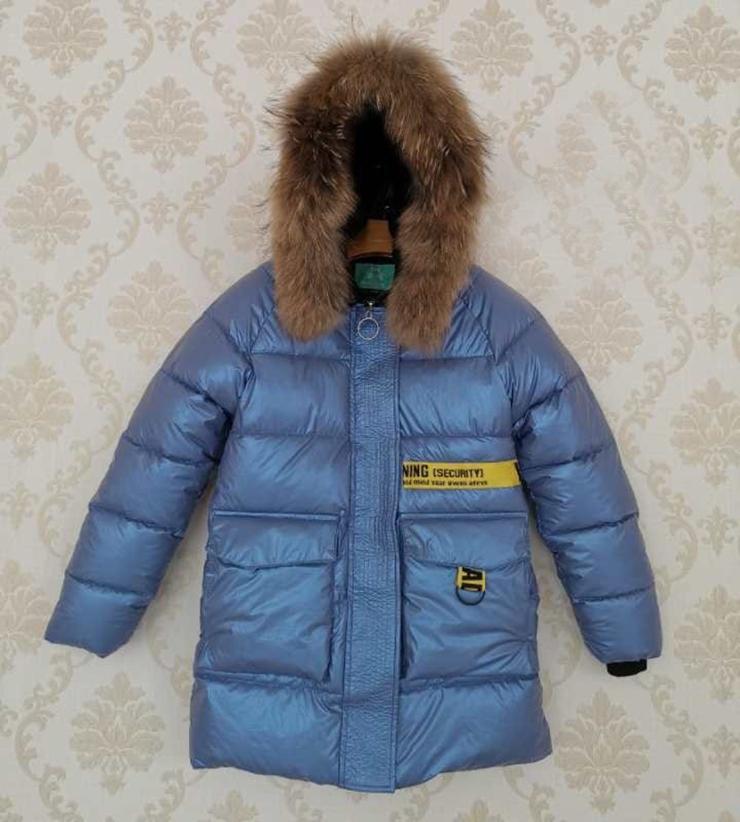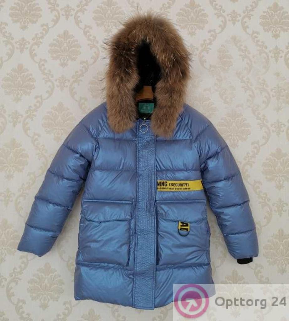 Пуховик подростковый для девочки с натуральным мехом с отливом оптом