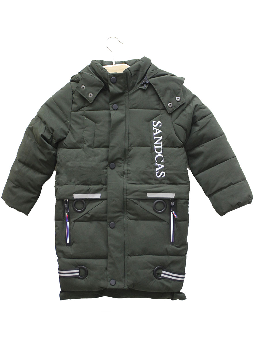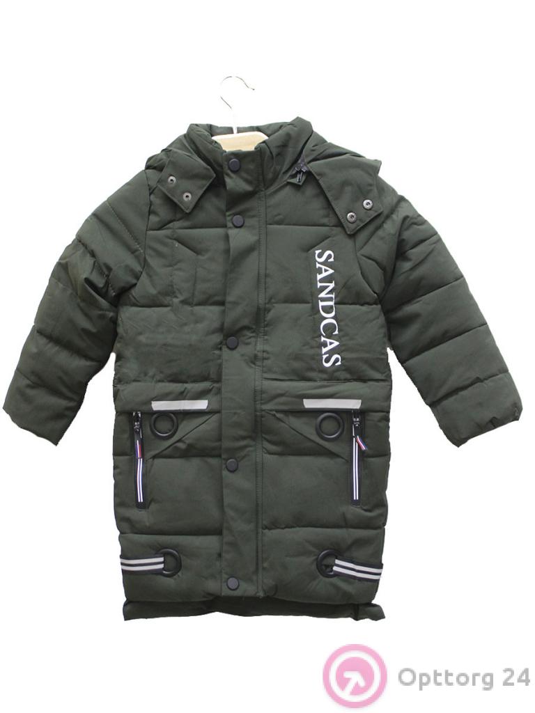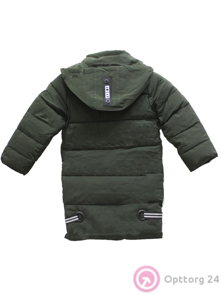 Пуховик подростковый для мальчика цвета хаки удлиненный оптом