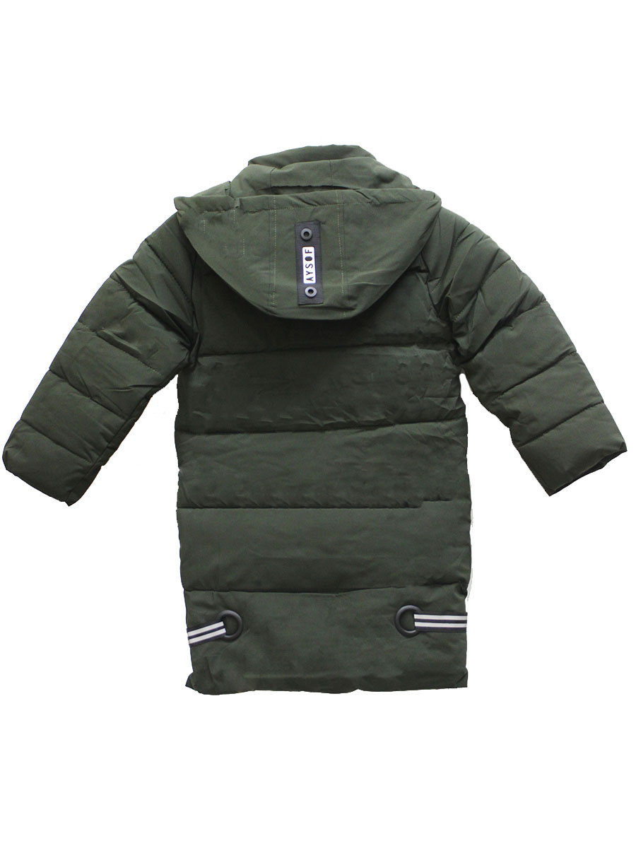 Описание: пуховик подростковый для мальчика цвета хаки удлиненный. Есть капюшон с мехом.