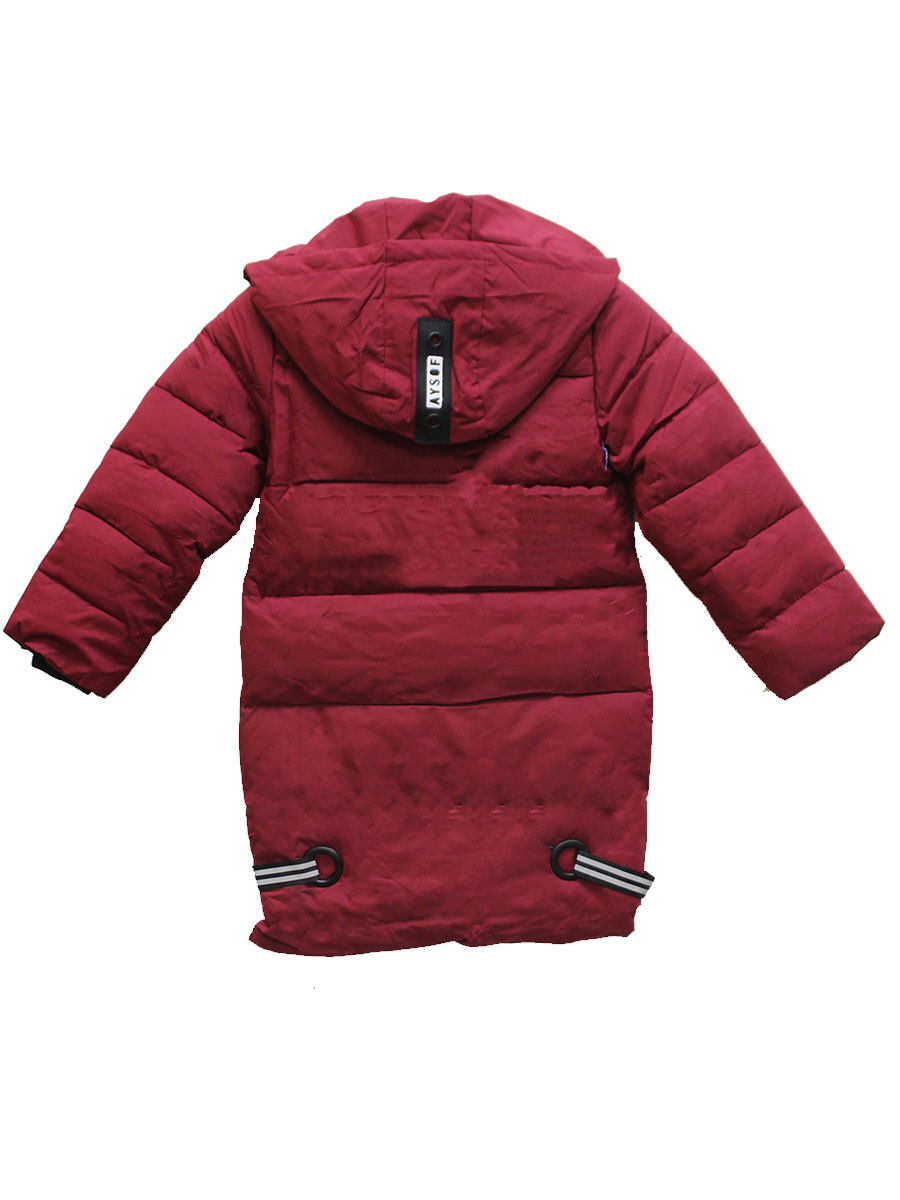 Описание: пуховик подротсковый для мальчика вишневый удлиненный. Есть капюшон с мехом.