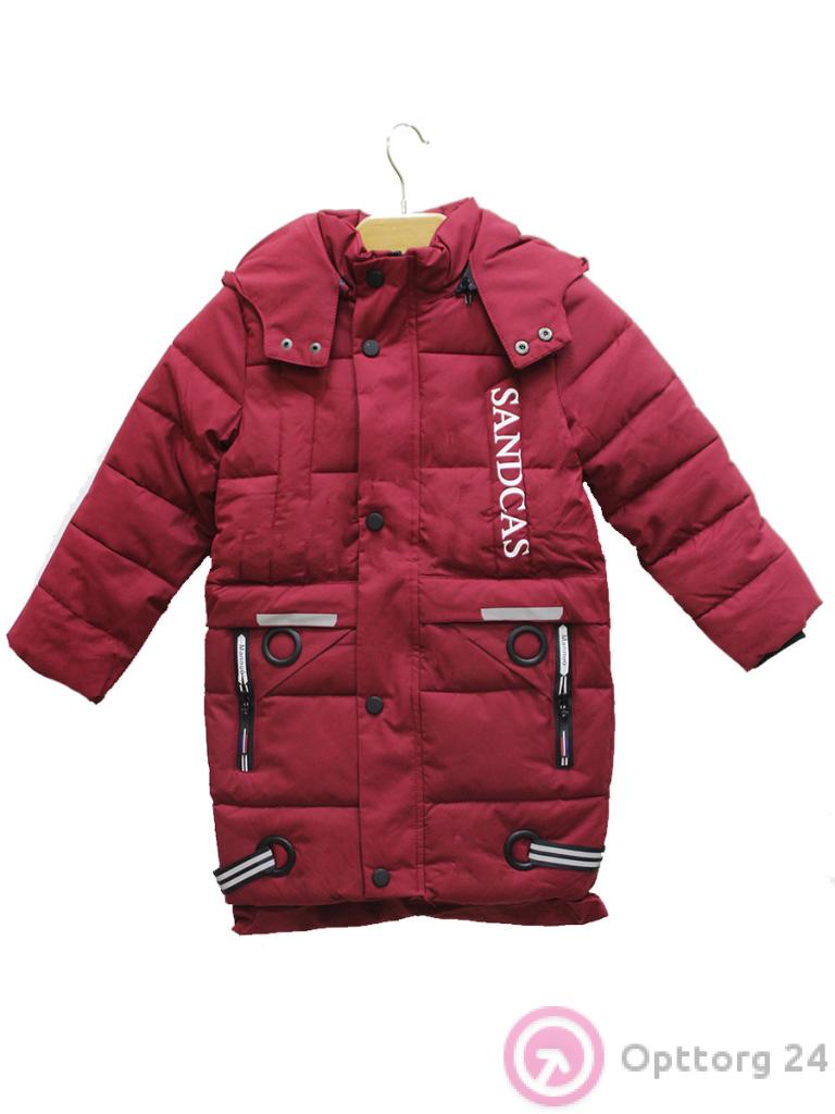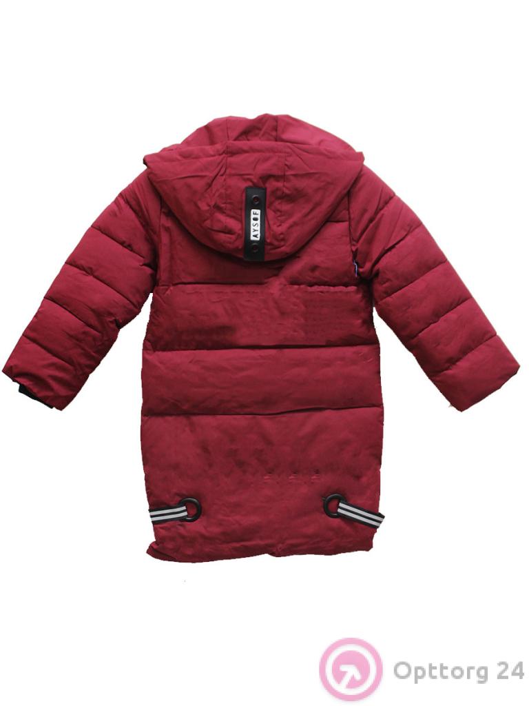 Пуховик подротсковый для мальчика вишневого цвета удлиненный оптом