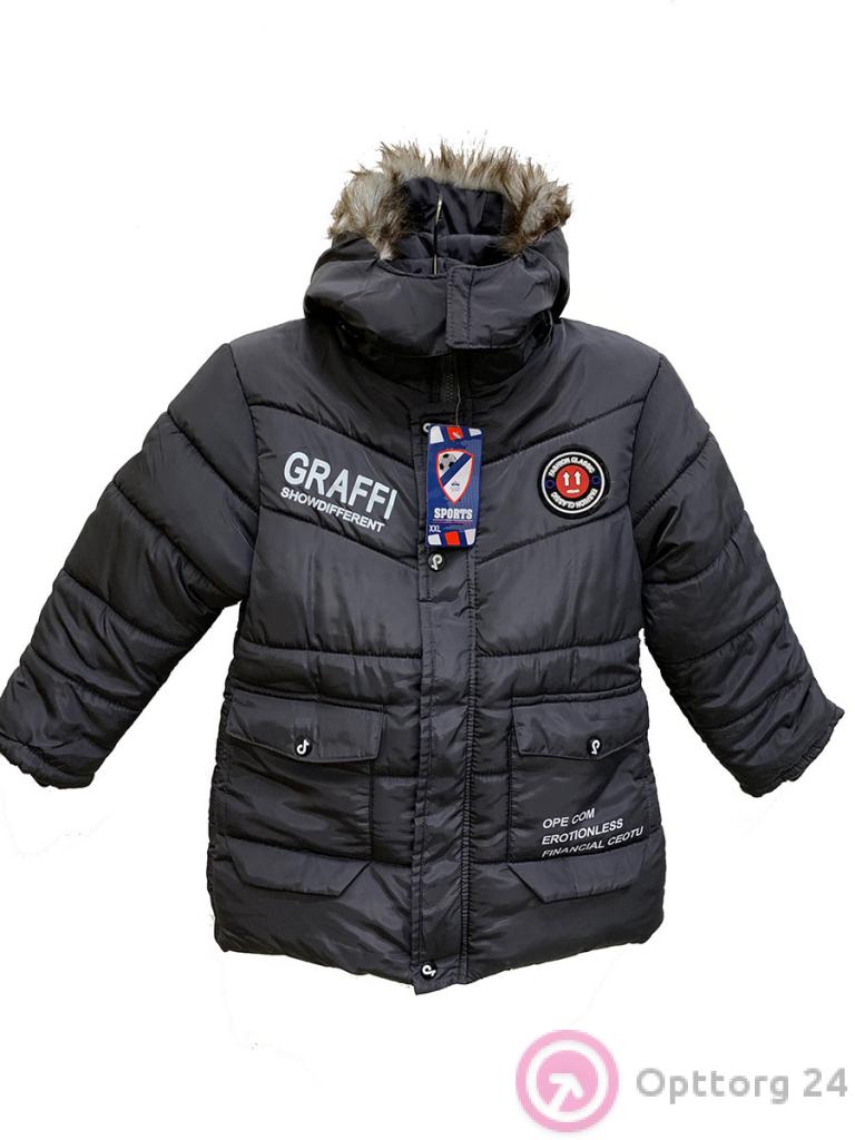 Пуховик зимний для мальчика однотонный серого цвета оптом