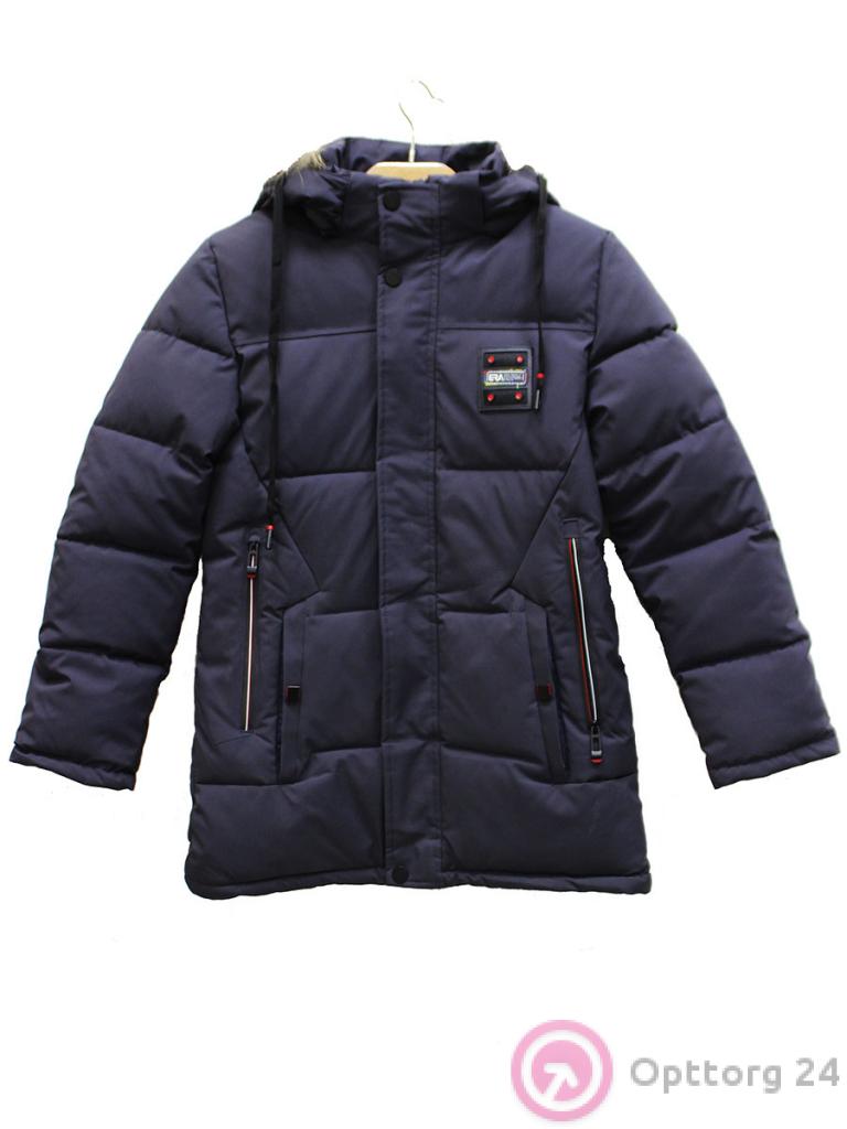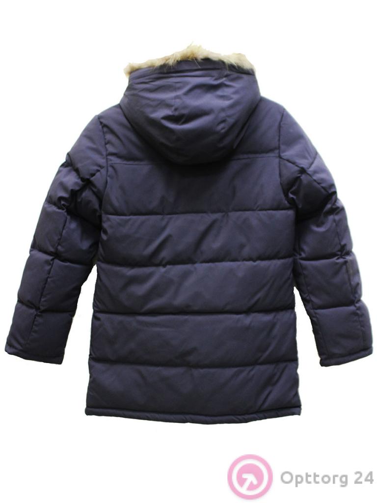 Пуховик зимний для мальчика подростковый темно-синего цвета оптом