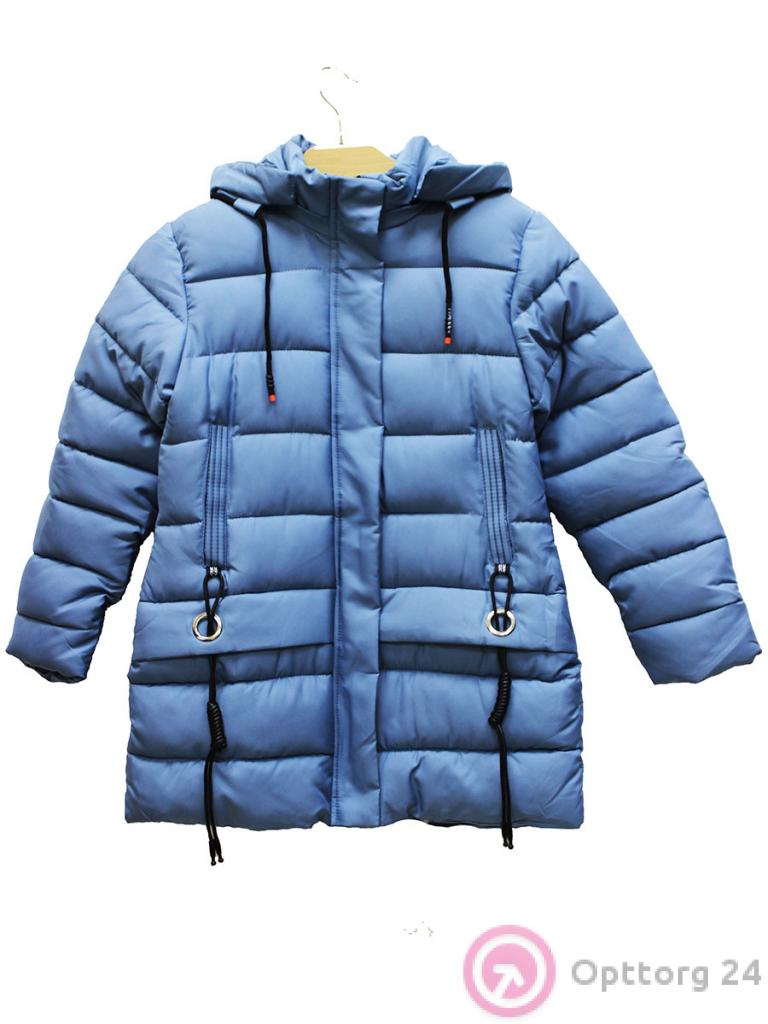 Пуховик зимний на девочку синего цвета на карманах шнурочки оптом