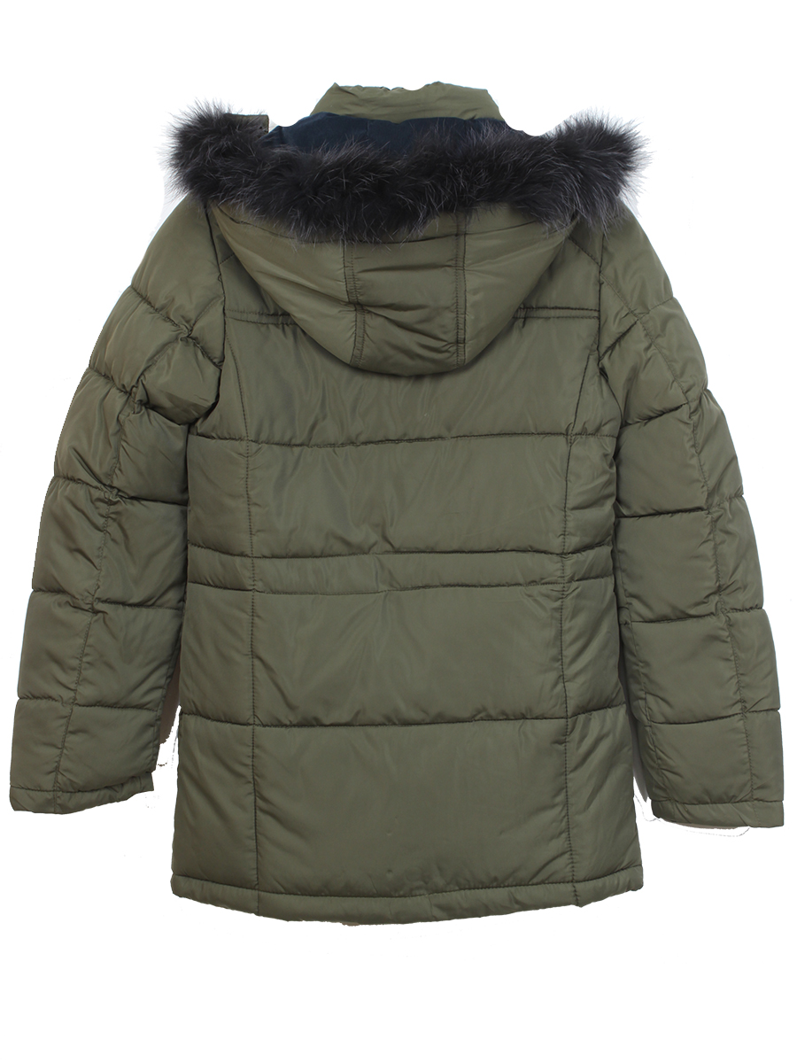 Пуховики подростковые с натуральным мехом для мальчика болотного цвета оптом