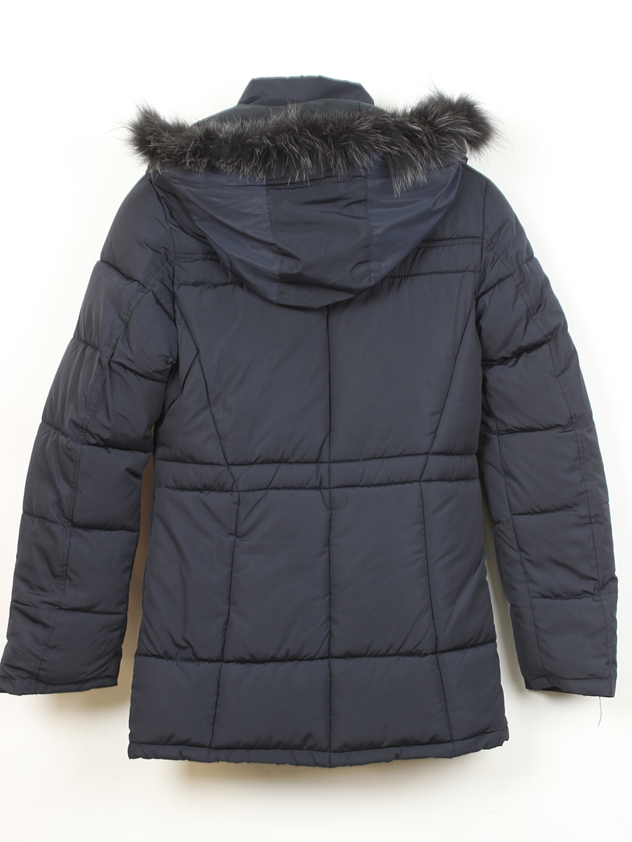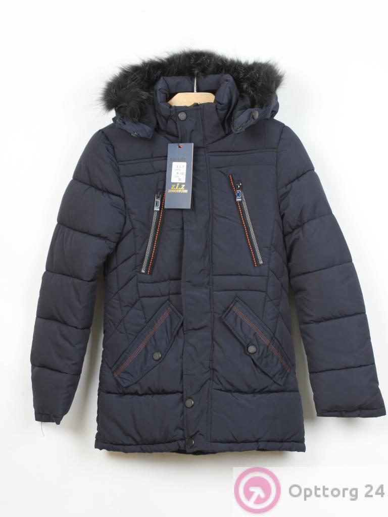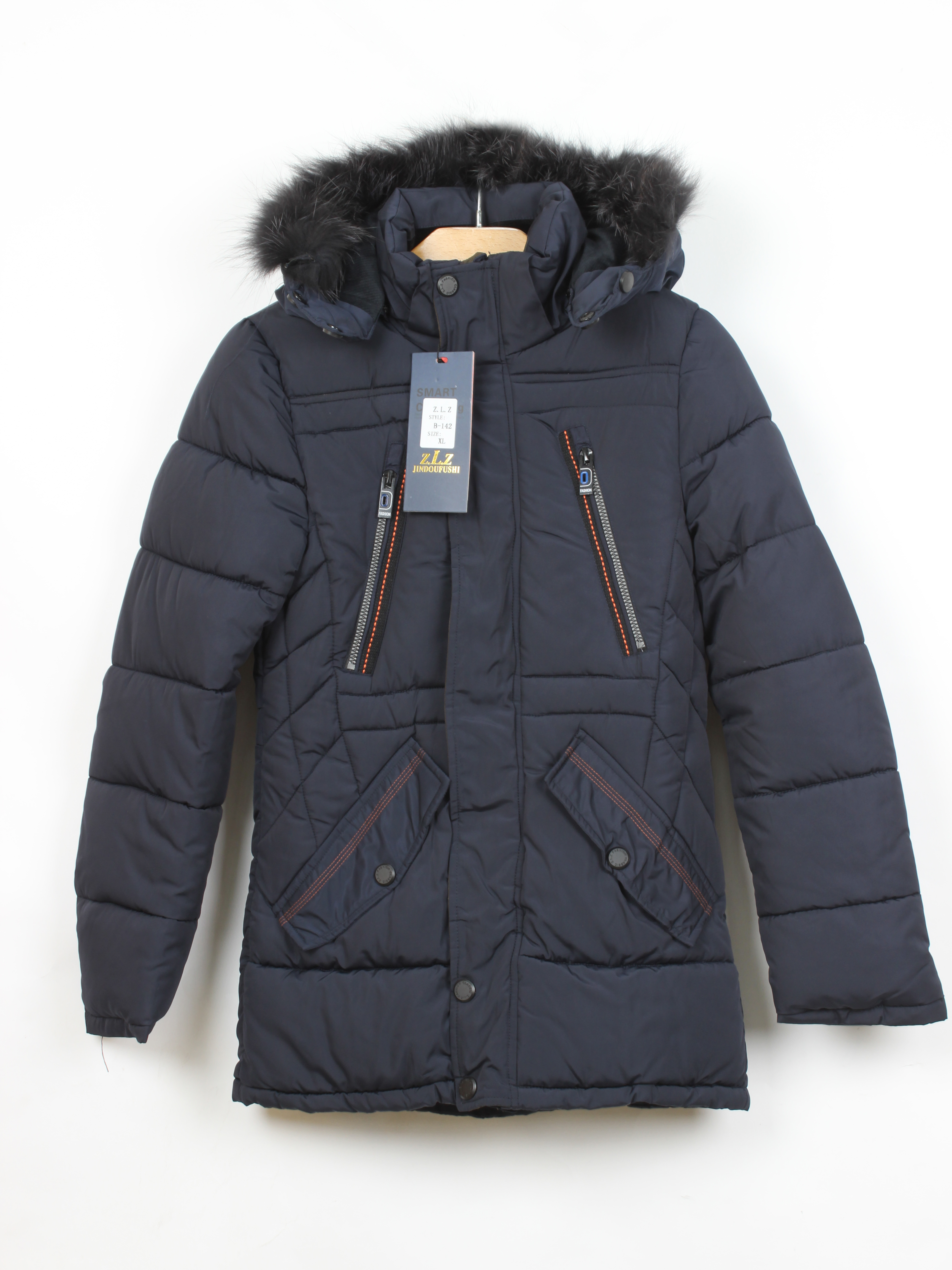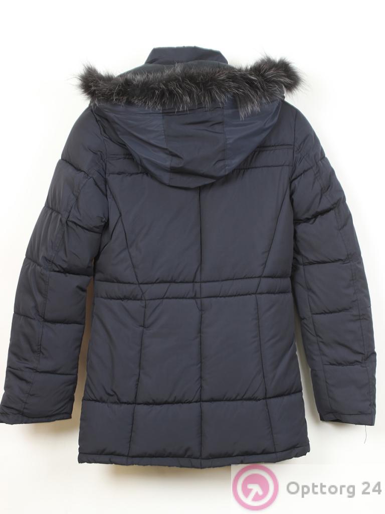 Пуховики подростковые с натуральным мехом для мальчика темно-синяя оптом