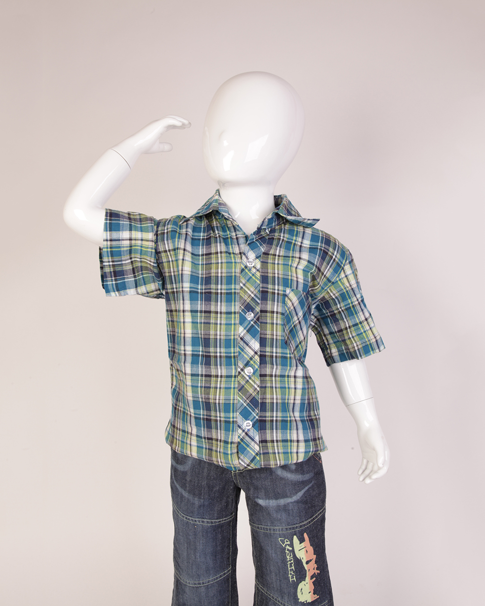 Рубашка детская синяя в клетку оптом