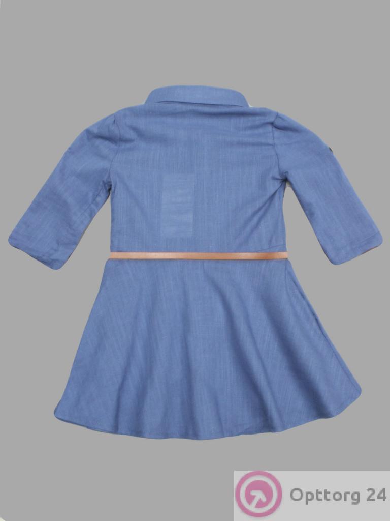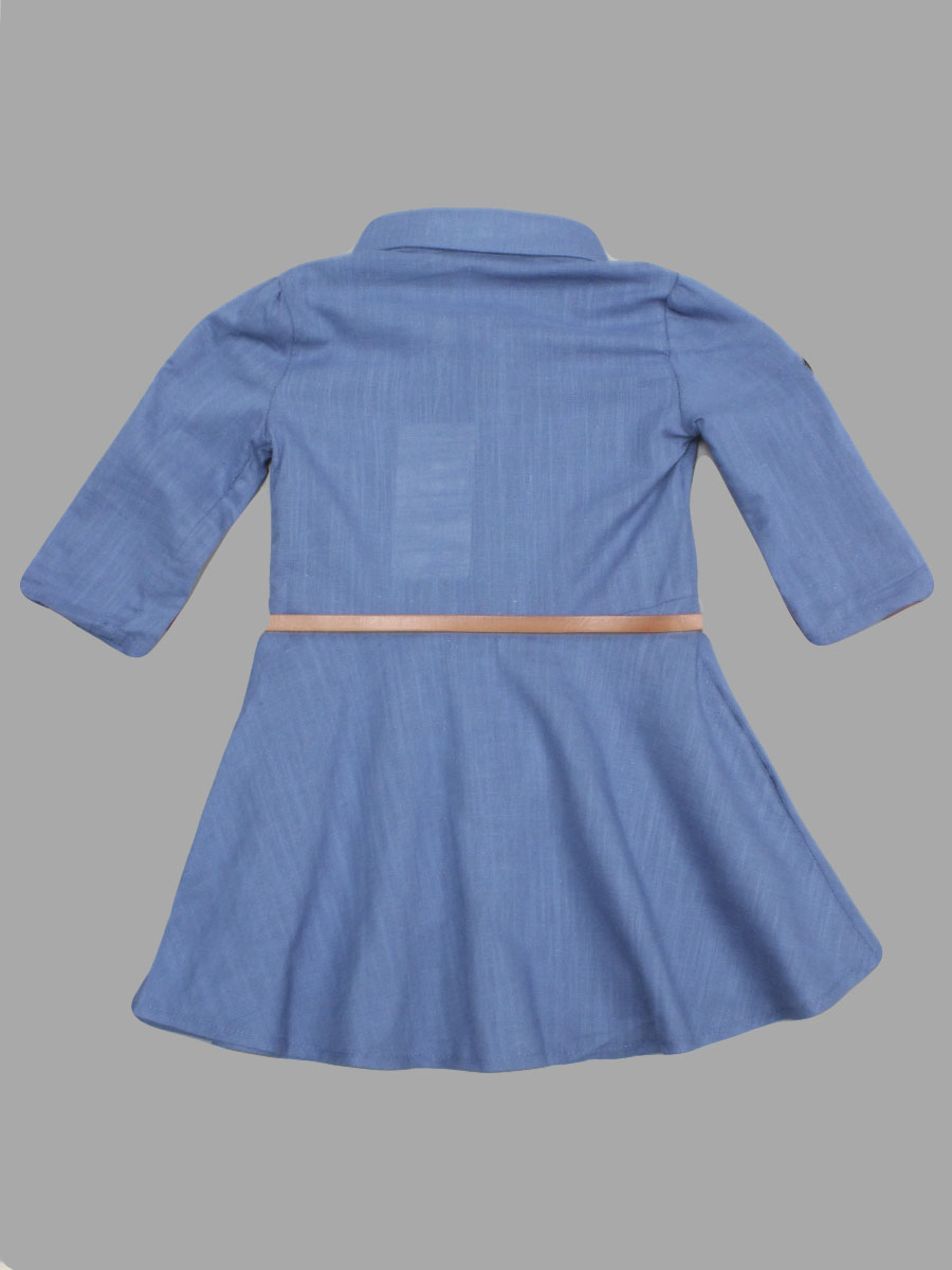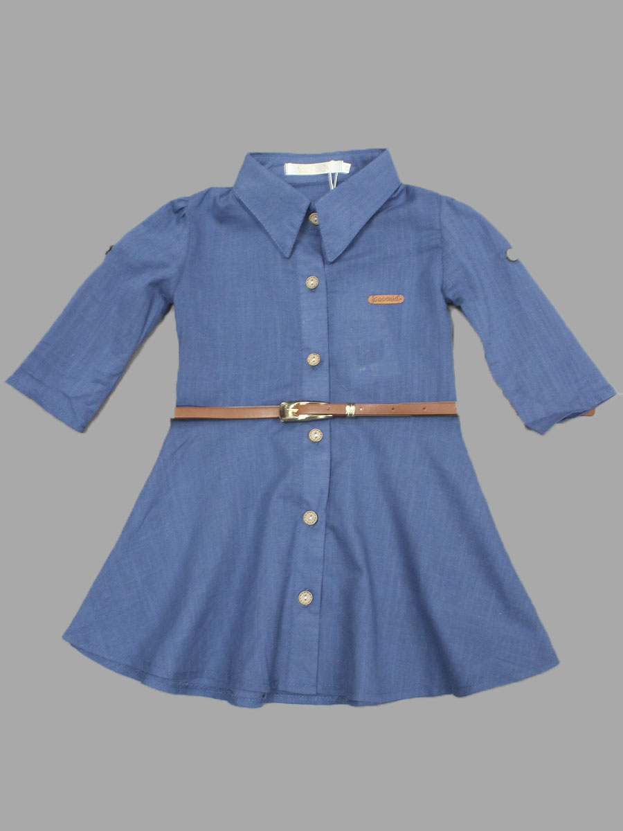 Детская рубашка синего цвета с поясом, модель для девочки.