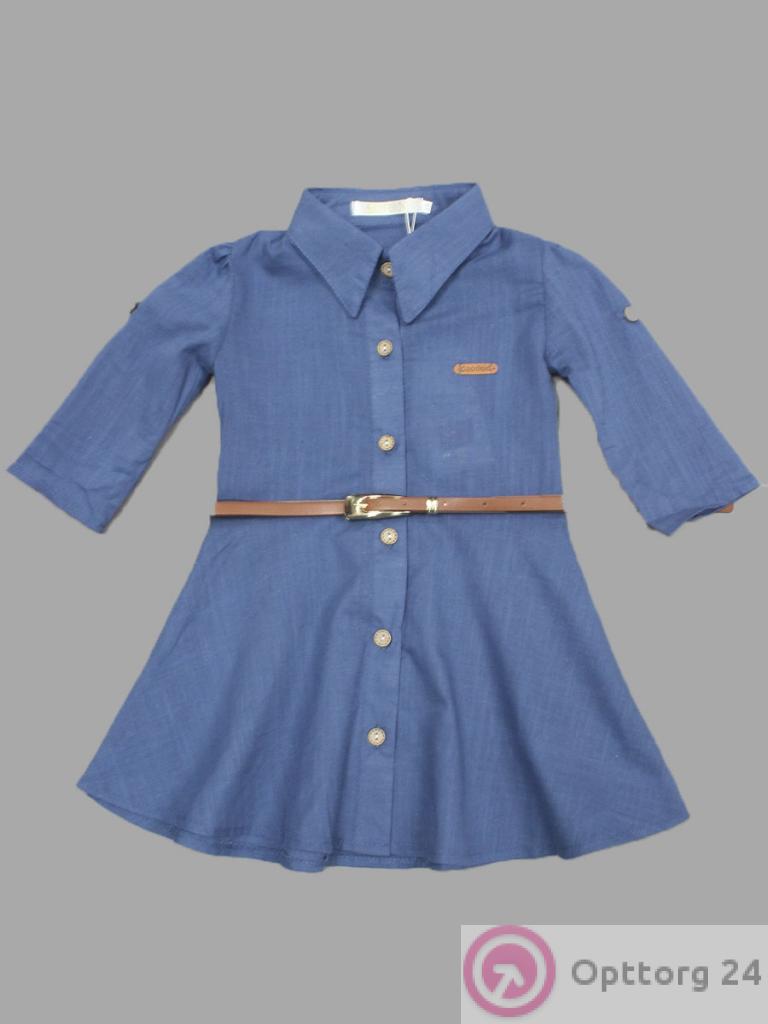Рубашка для девочки модель синего цвета удлинённая с поясом. оптом