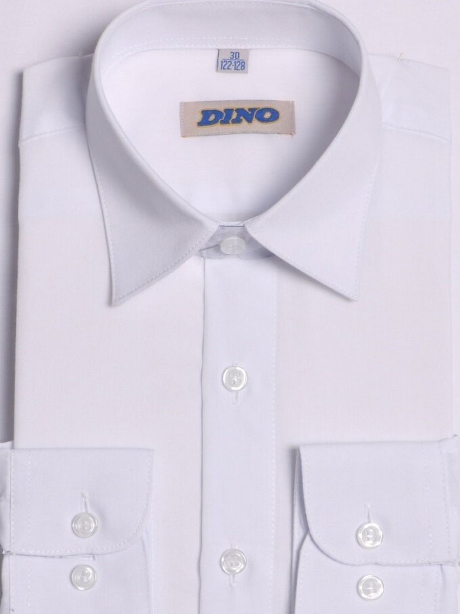 Классическая рубашка для мальчика белого цвета с коротким рукавом. Застежка на пуговицах. Отличный вариант и для школы и для праздничного мероприятия.