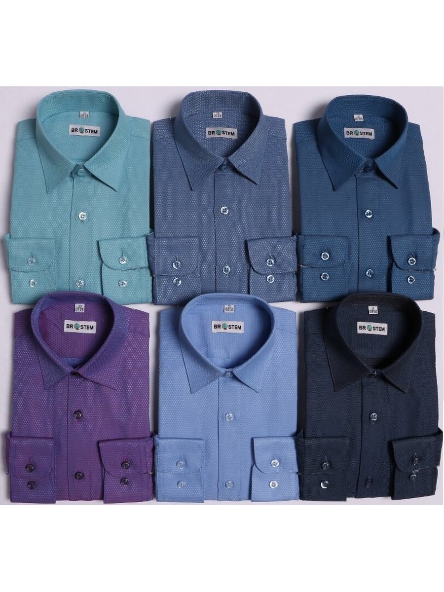 Классическая рубашка для мальчика с геометрическим рисунком. Модель имеет длинные рукава и застежку на пуговицах. Приталенный крой изделия.