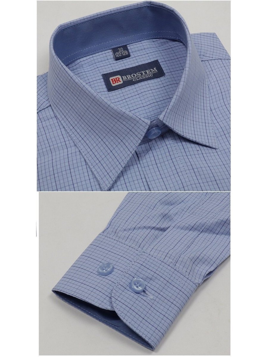 Рубашка для мальчика классического кроя имеет длинные рукава и застежку на пуговицах. Изделие в мелкую клетку. Отличный выбор для вашего ребенка.