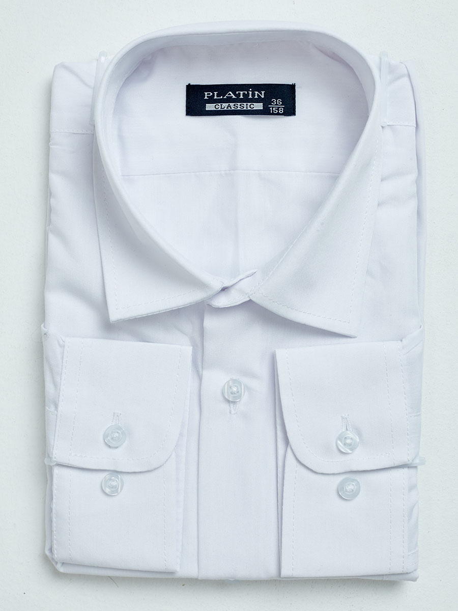 Описание: Рубашка школьная для мальчика PLATIN с длинным рукавом, белого цвета. Застежка на ряде пуговиц.