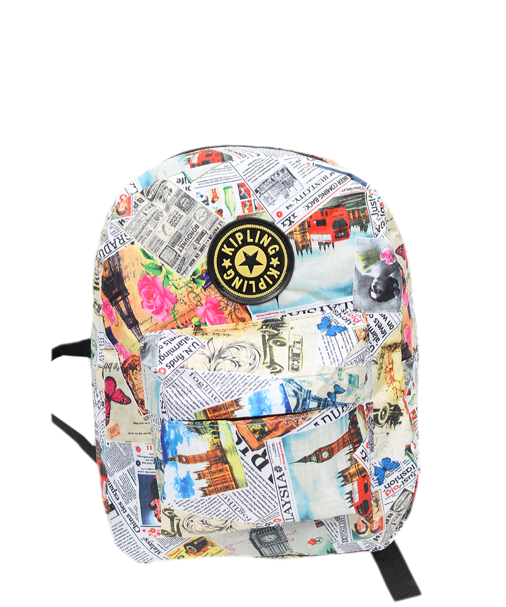 Рюкзак школьный с лейблом и лямками контрастного черного цвета. Изделие имеет одно отделение и небольшой карман.