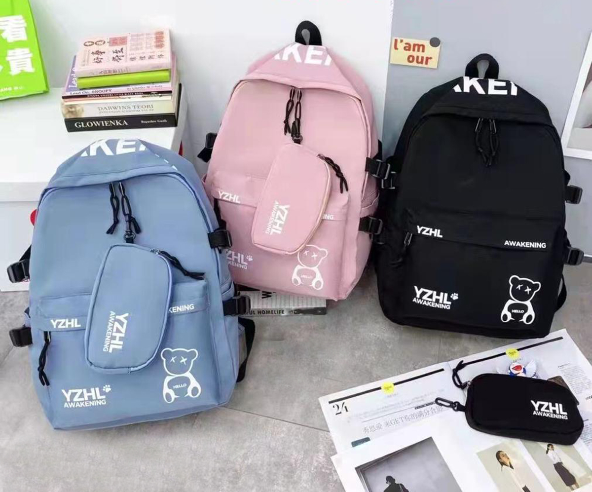 Описание: Рюкзак школьный для девочки с принтом медведя. Спереди есть большой накладной карман на молнии. У рюкзака есть просторное отделение для книг и тетрадей.