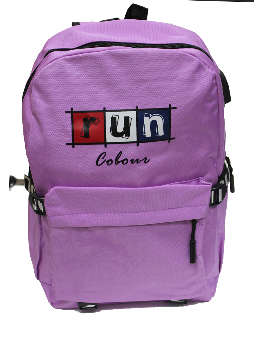 описание : рюкзак школьный для девочки сиреневого цвета с надписью RUN. Есть большой накладной карман и провода.