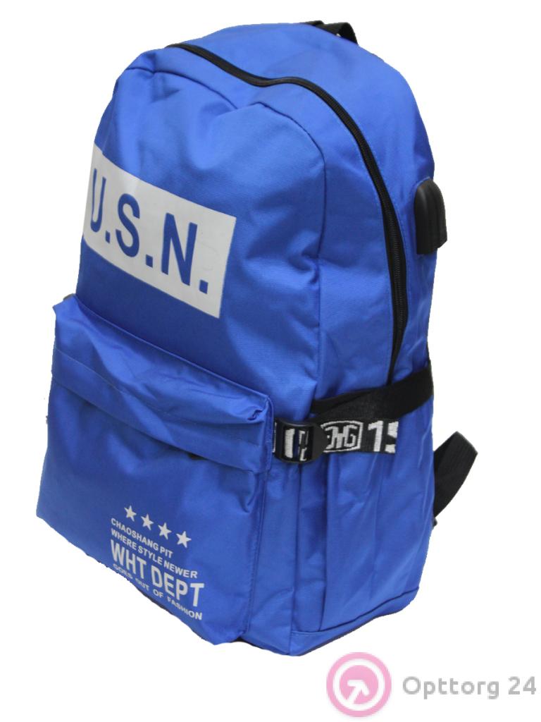 Рюкзак школьный для мальчика синий с серой надписью оптом