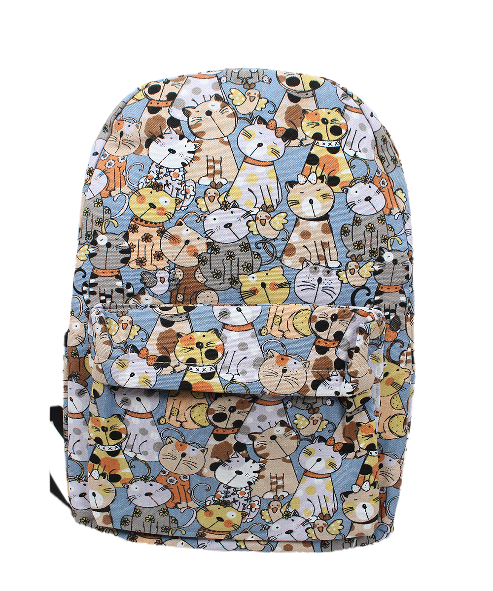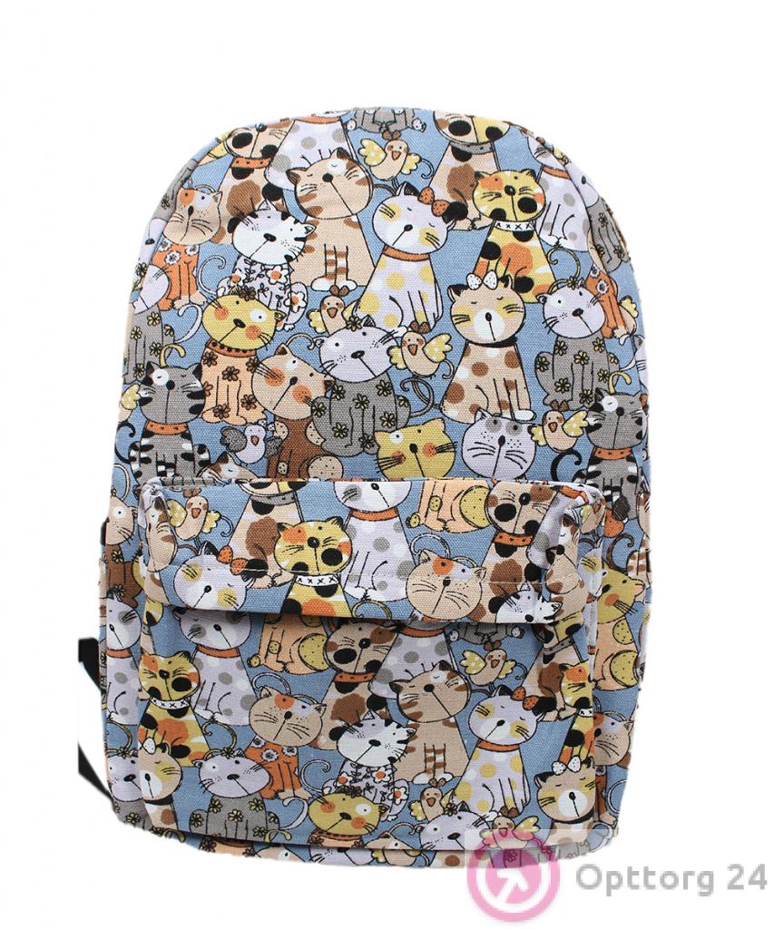 Высококачественный школьный рюкзак с изображением кошек. Есть отделение для банки с водой, спереди накладной карман. Одно вместительное главное отделение.