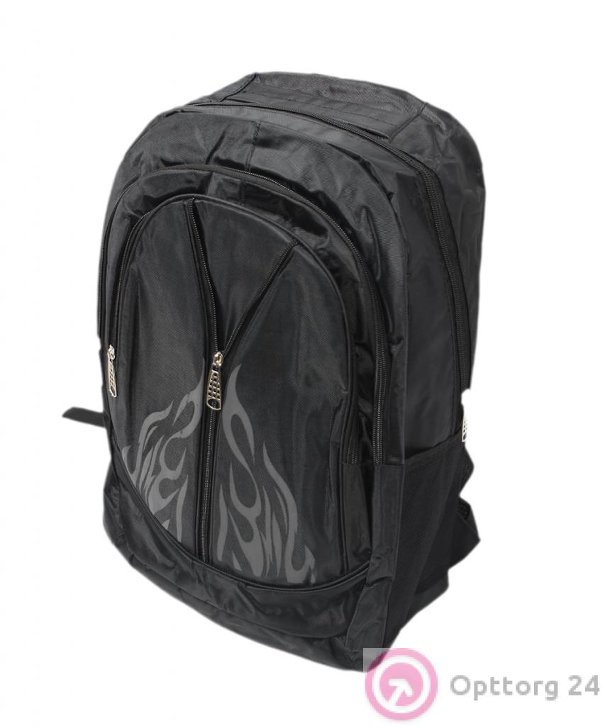 Вместительный школьный рюкзак с одним большим отделением и двумя поменьше. Все застежки на молнии. Есть боковой карман на резинке.