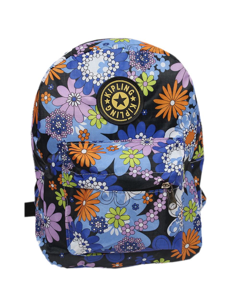 Современный яркий школьный рюкзак с цветочным принтом. Скругленный верх, одно большое отделение на молнии.