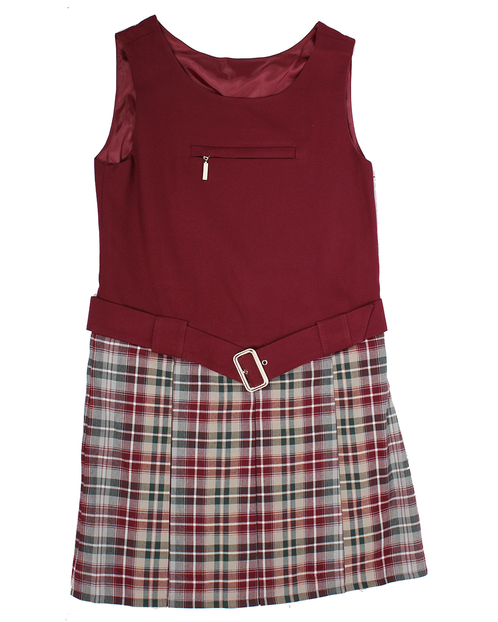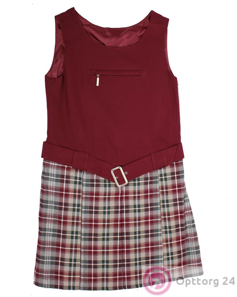 Сарафан для девочки бордовый с клетчатой юбкой оптом