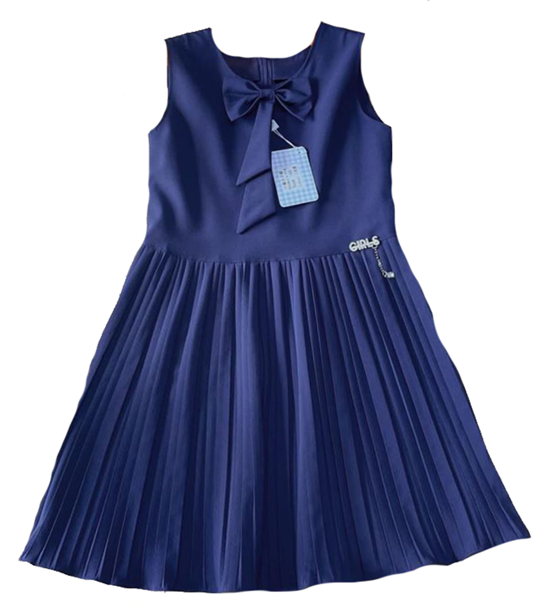 Описание: Сарафан для девочки школьный темно-синего цвета декорирован бантом. Застежка сзади на молнии. Расклешенный.