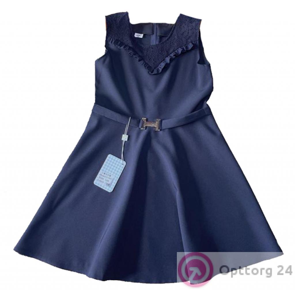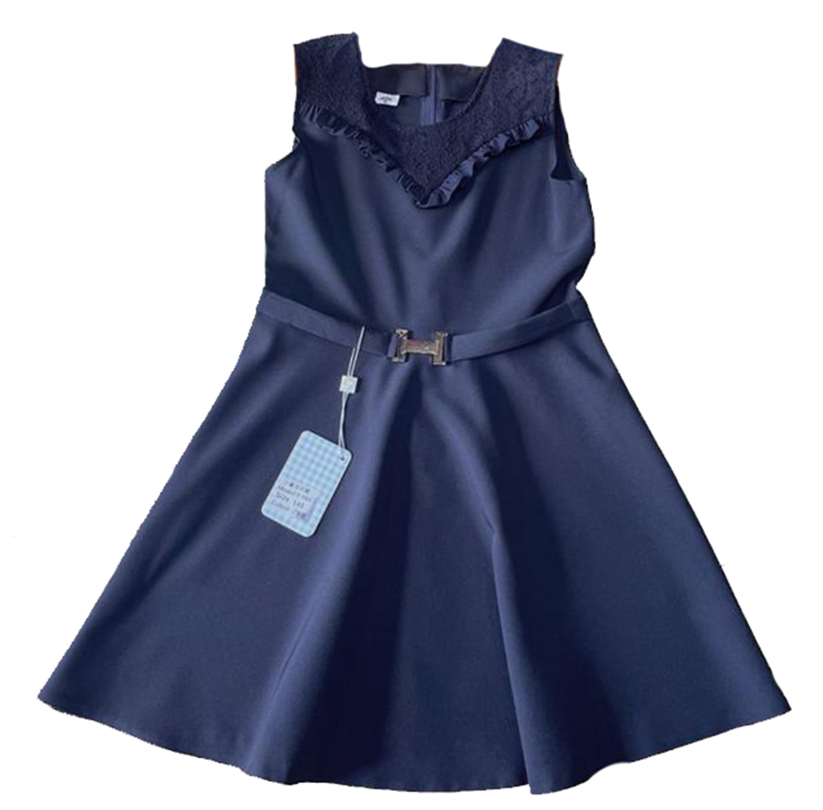 Описание: Сарафан для девочки школьный темно-синего цвета с поясом. Застежка сзади на молнии. Расклешенный.