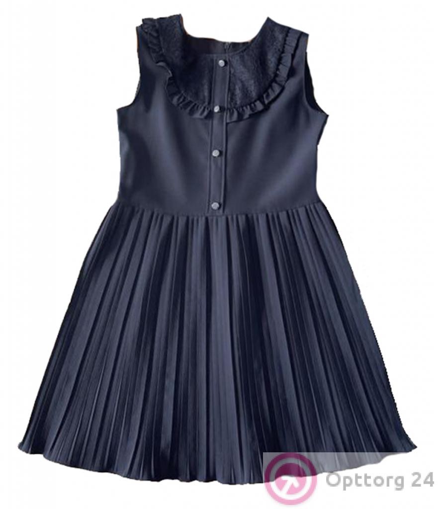 Описание: Сарафан для девочки школьный черного цвета декорирован рюшами. Застежка сзади на молнии. Расклешенный.