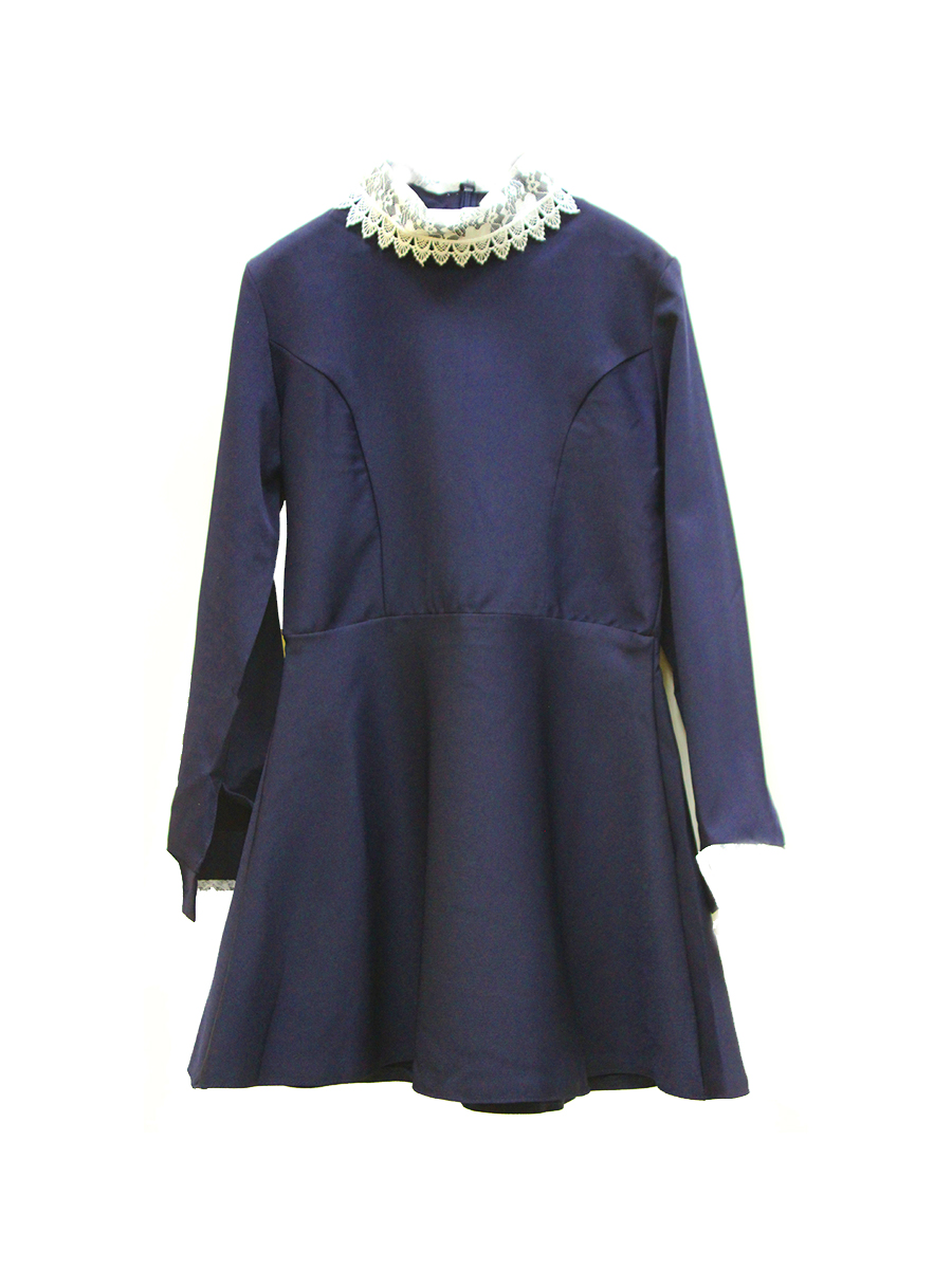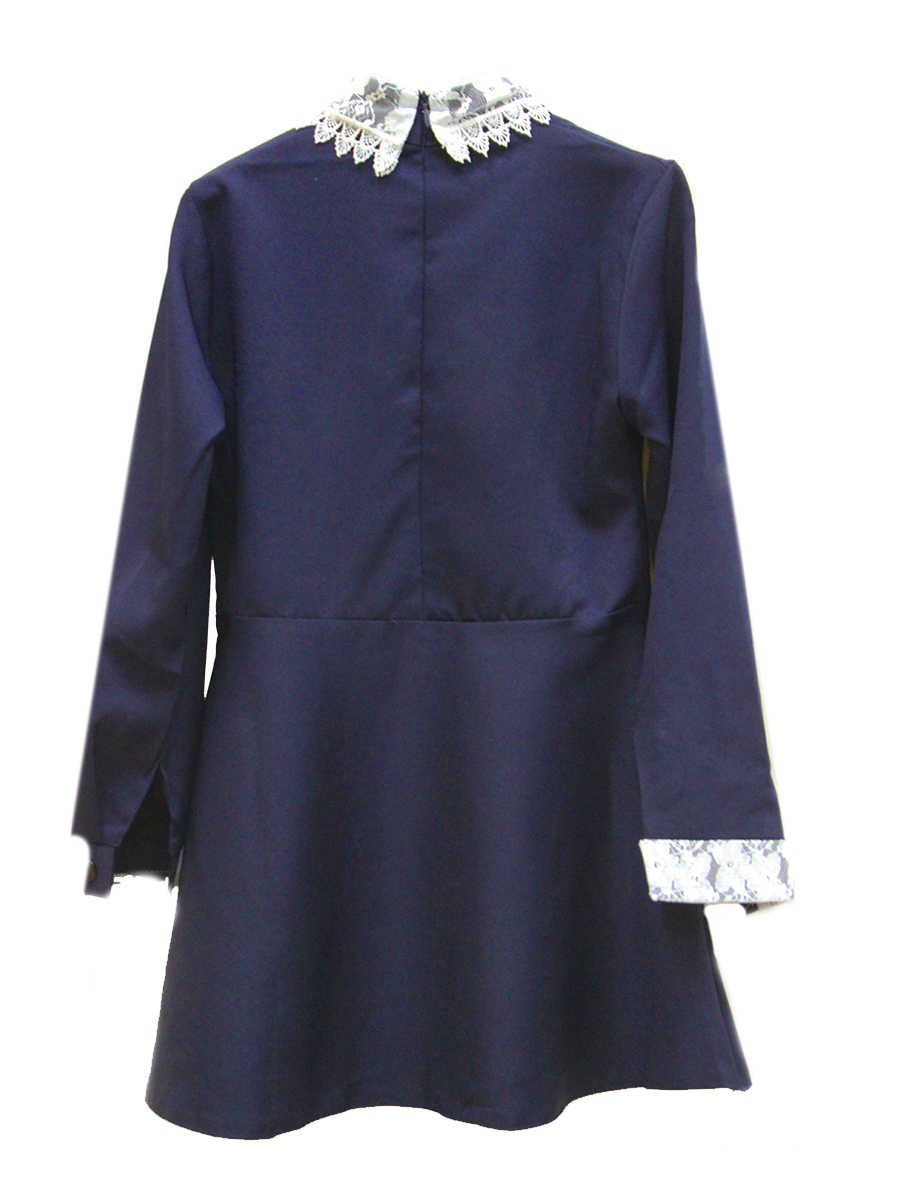Описание: сарафан школьный для девочки синий с белым кружевом.
