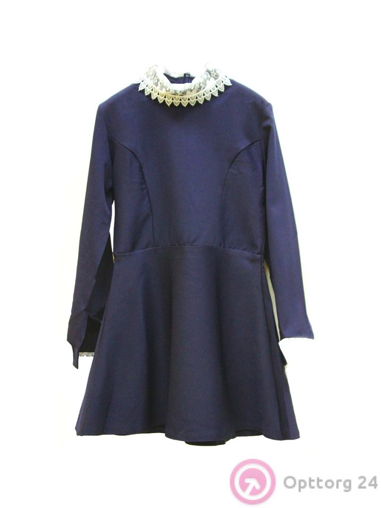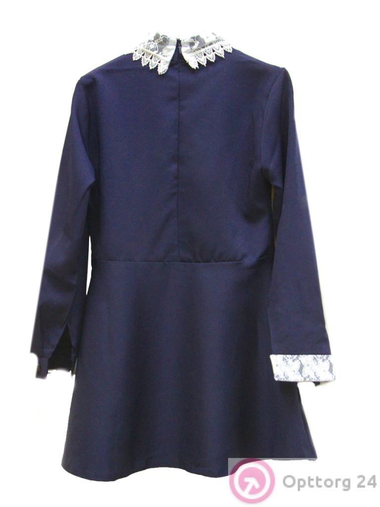Сарафан для девочки школьный синий с белым кружевом оптом