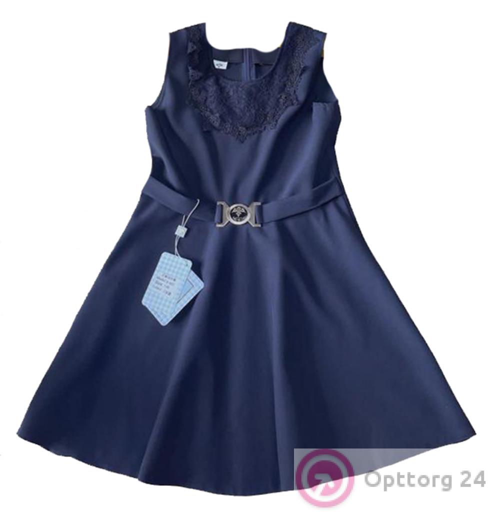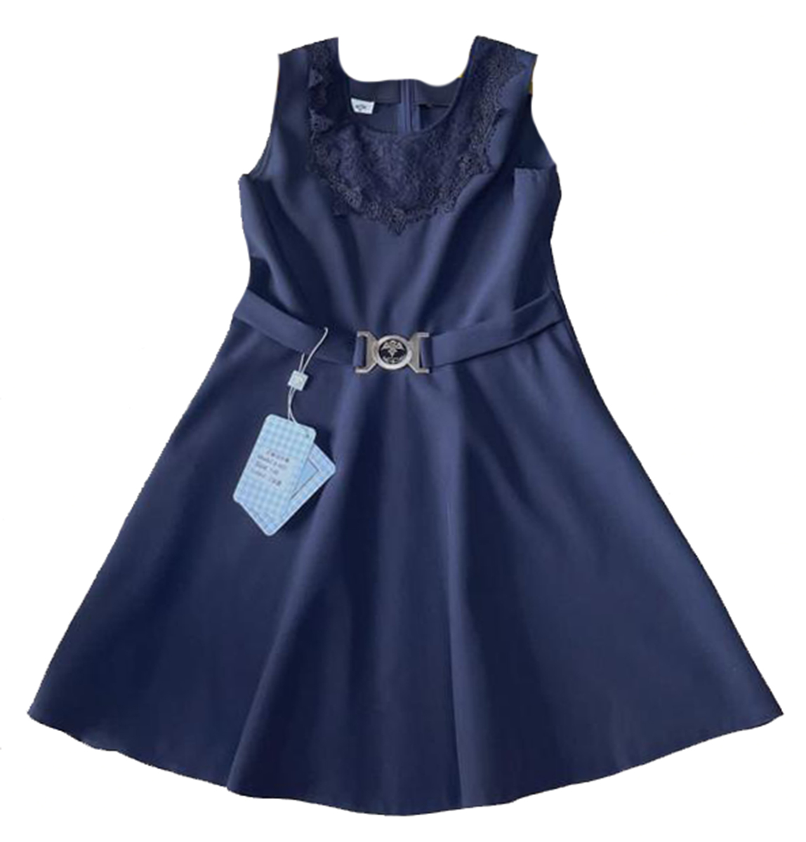 Описание: Сарафан для девочки школьный темно-синего цвета с поясом. Округлая горловина, застежка сзади на молнии. Расклешенный.