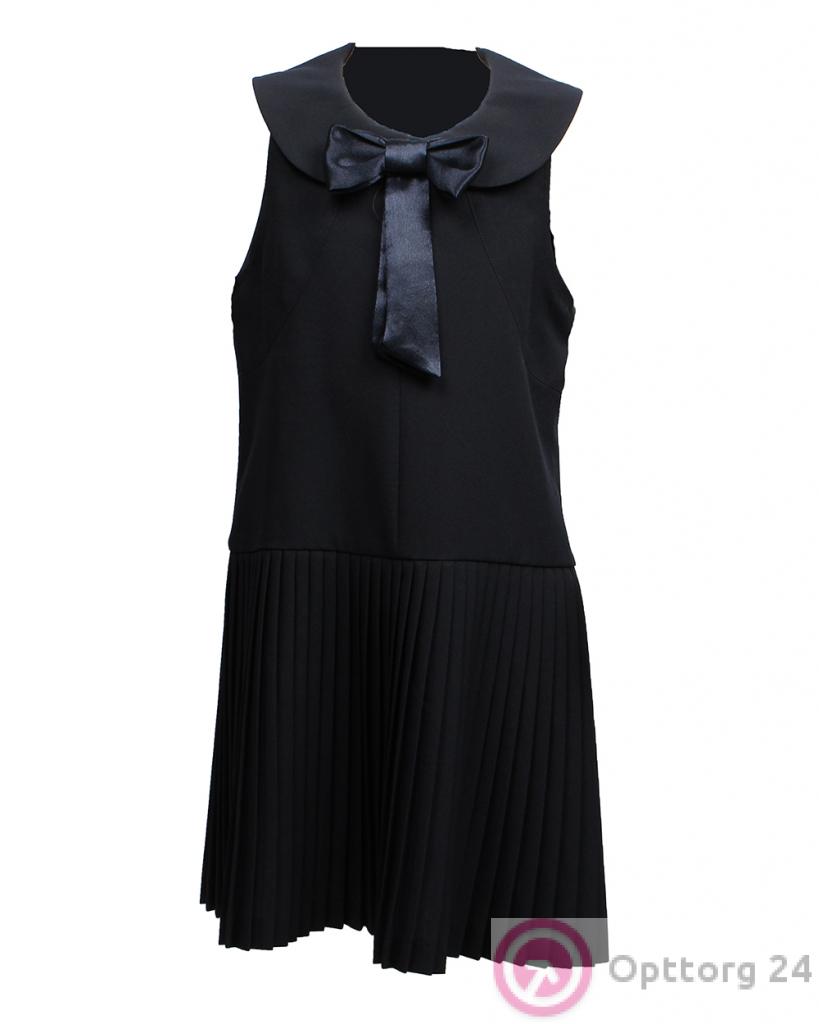 Сарафан для девочки темно-синий с бантом и юбкой-плиссе оптом