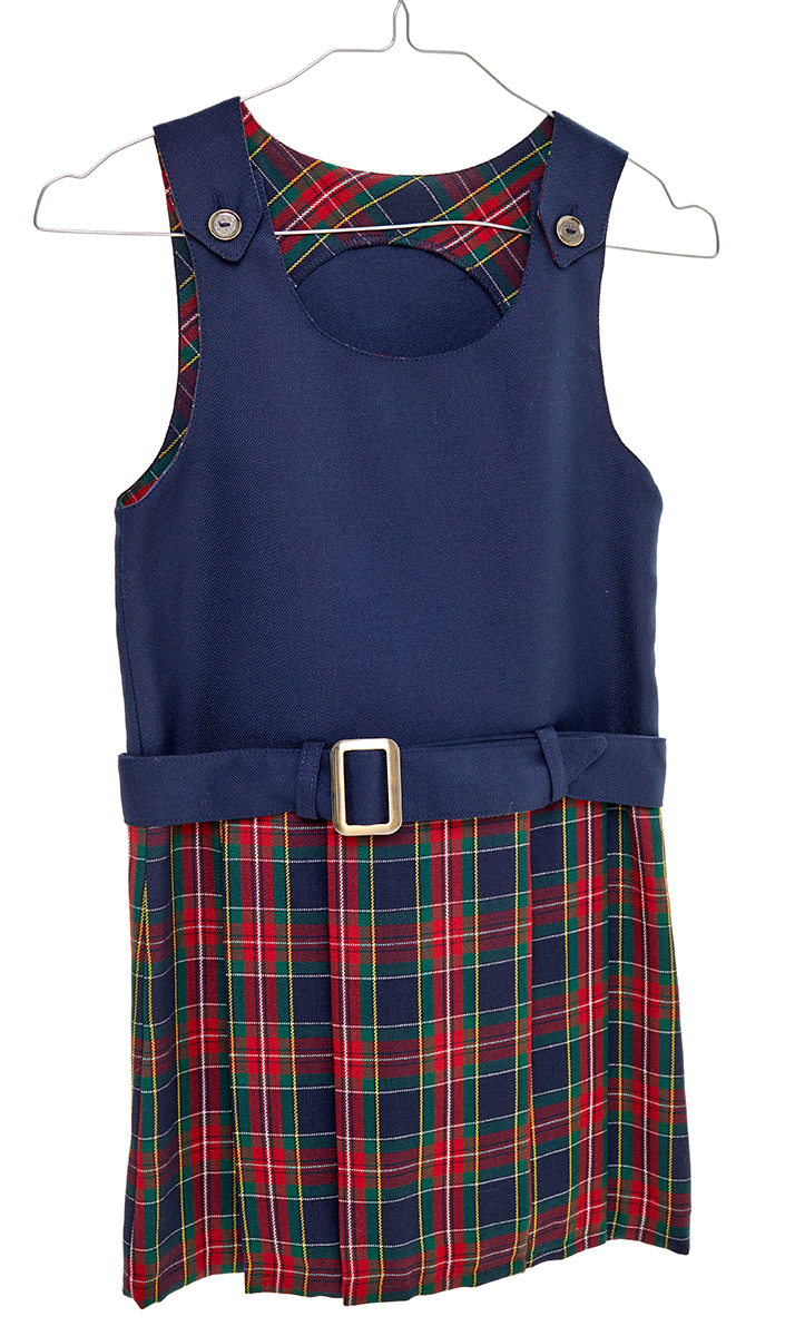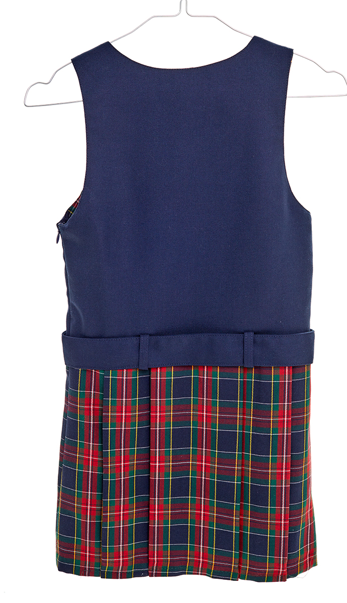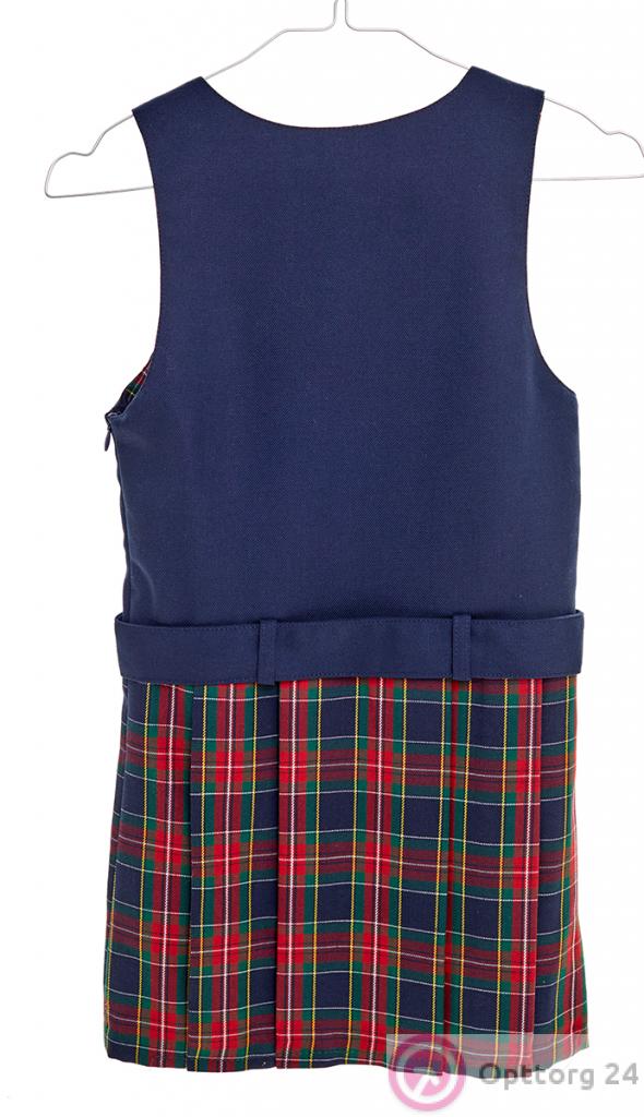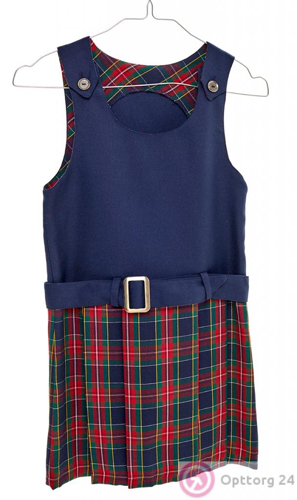 Описание: Сарафан школьный для девочки с поясом, верх сарафана темно-синего цвета, а низ в клеточку. Широкие бретели с застежкой на пуговице.