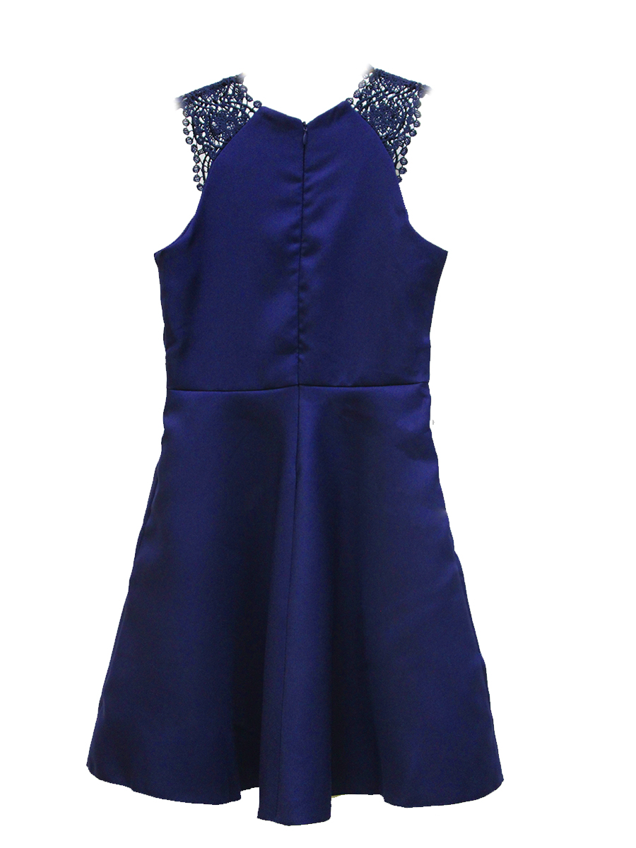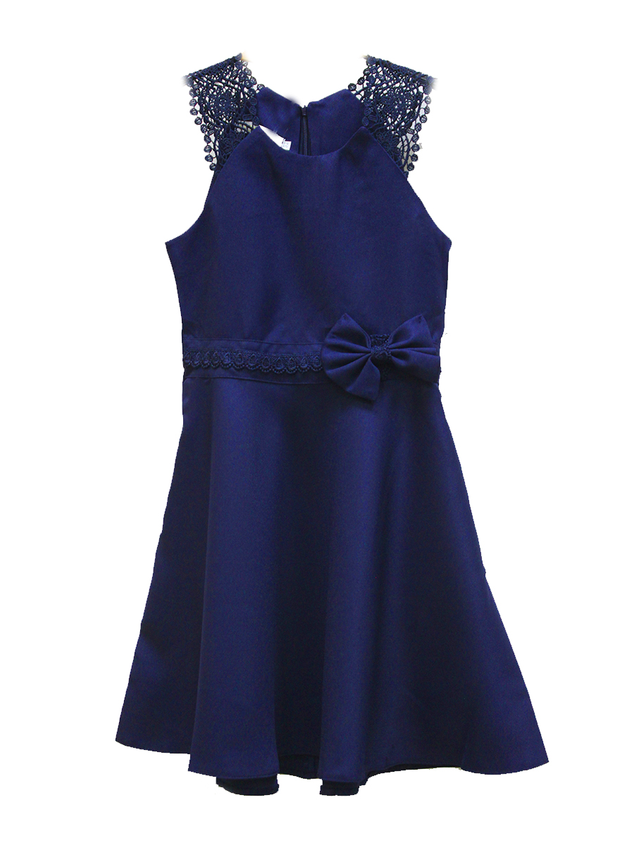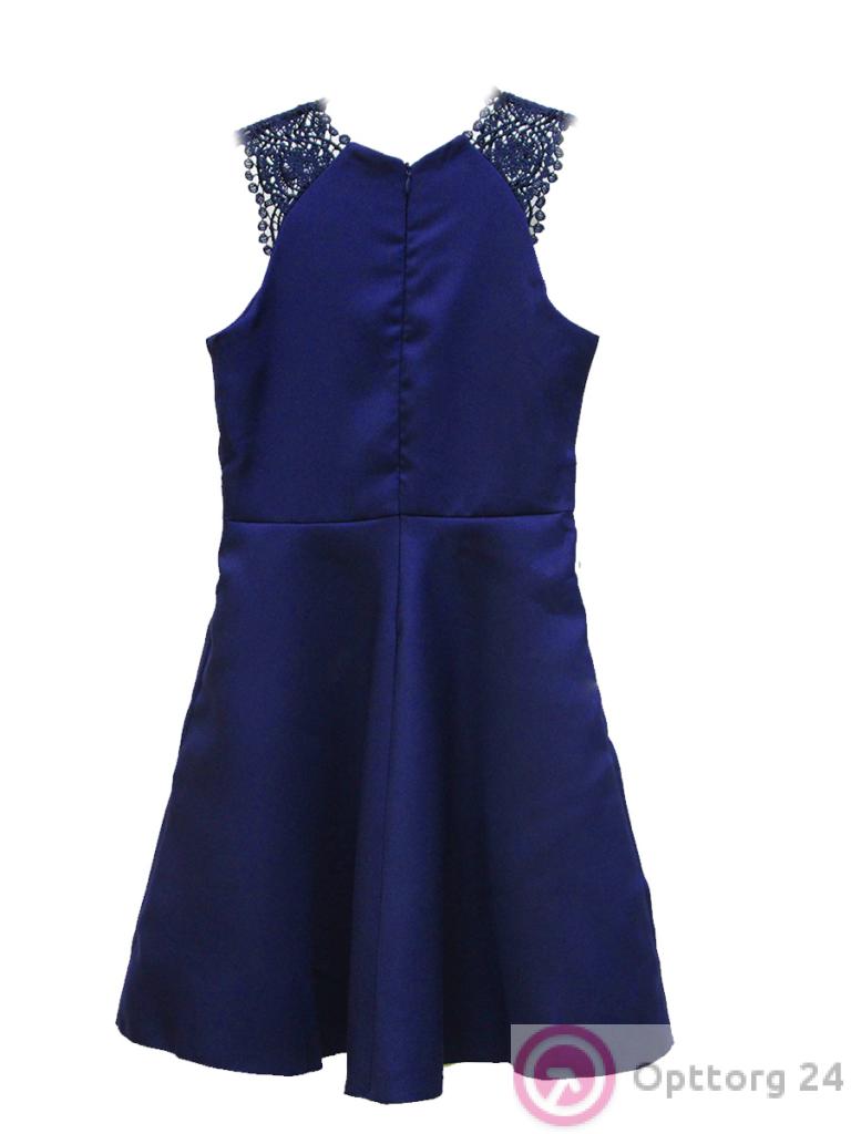 Сарафан школьный для девочки синий с бантом и кружевом оптом