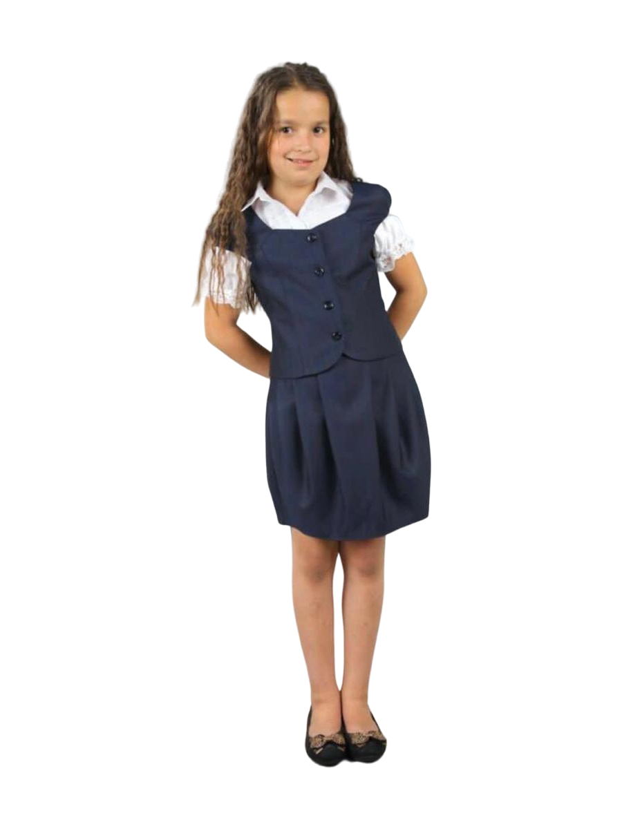Строгий и в то же время стильный школьный костюм для девочки серого цвета сочетает в себе элегантность и практичность, костюм прекрасно подойдет для торжественных мероприятий и ежедневных школьных занятий. Юбка прямая со складками, приталенный жилет на ряде пуговиц с широким вырезом на горловине.