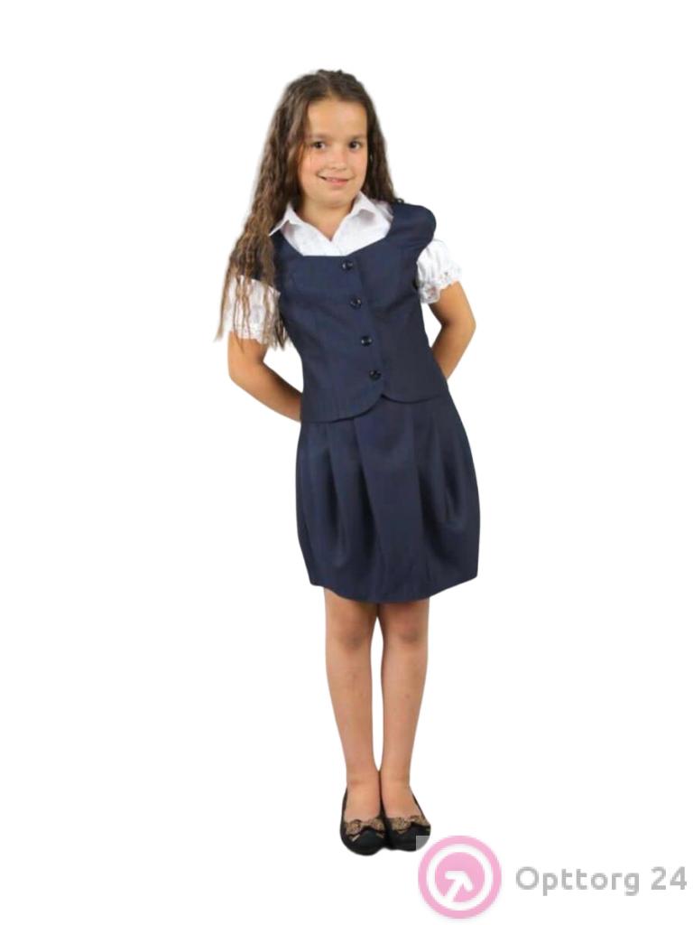 Серый костюм школьный для девочки жилет и юбка оптом