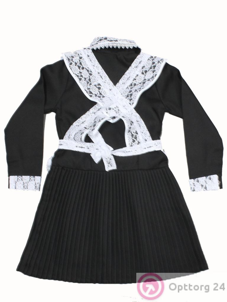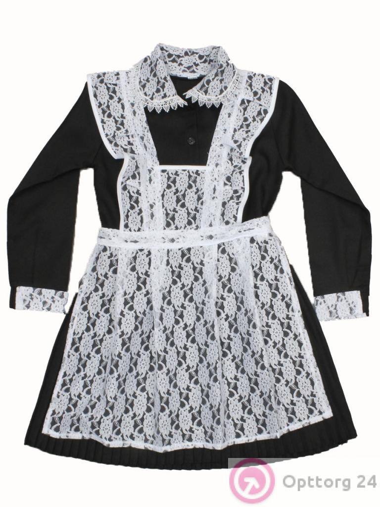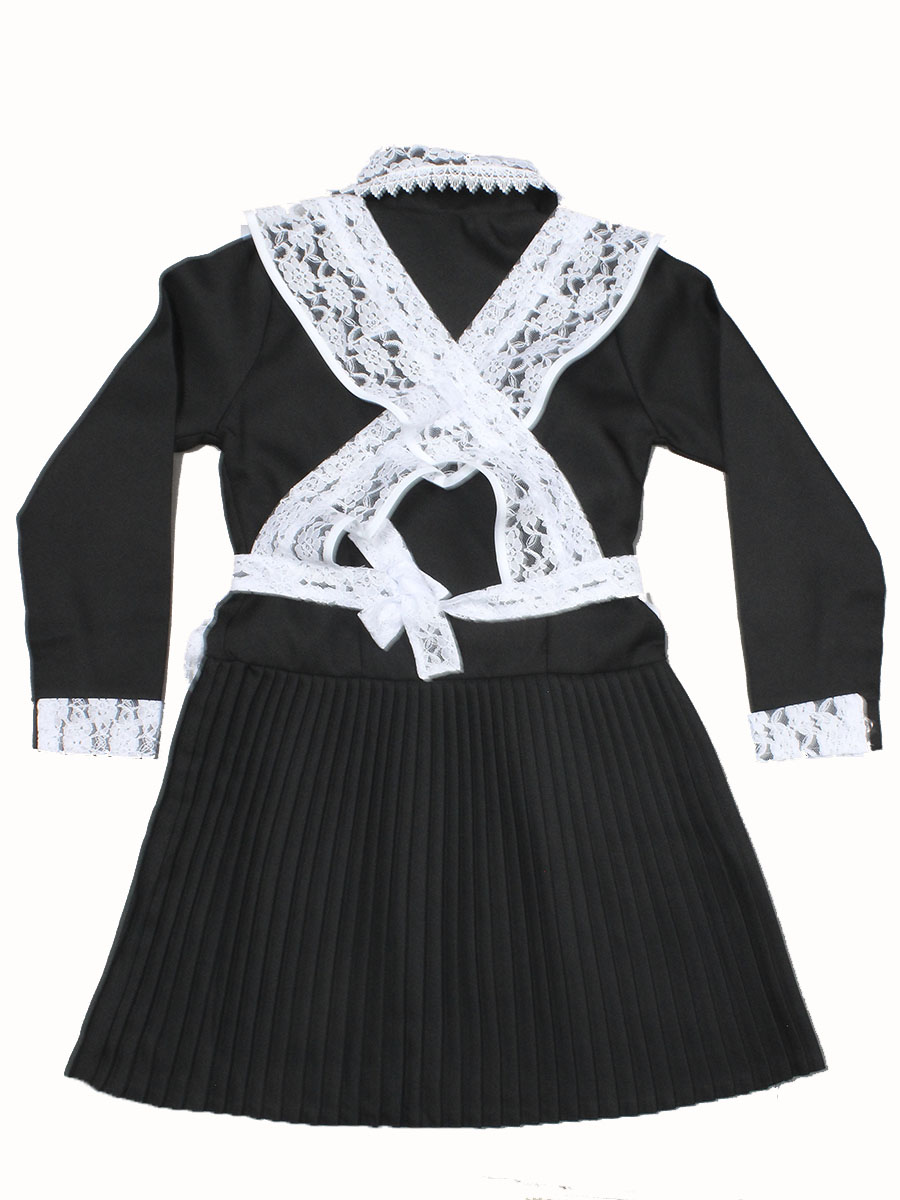 Школьный сарафан черного цвета с белым кружевным фартуком.