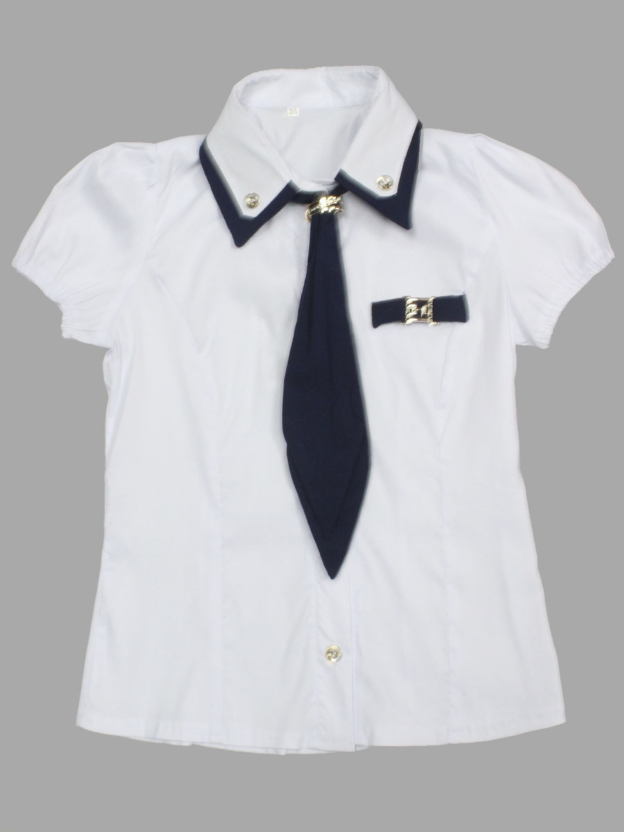 Детская блузка для девочка с коротким рукавом школьная модель с галстуком и коротким рукавом.