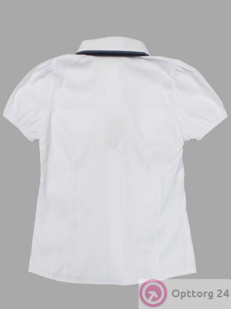 Школьная блузка для девочек с коротким рукавом и галстуком темно- синего цвета. оптом