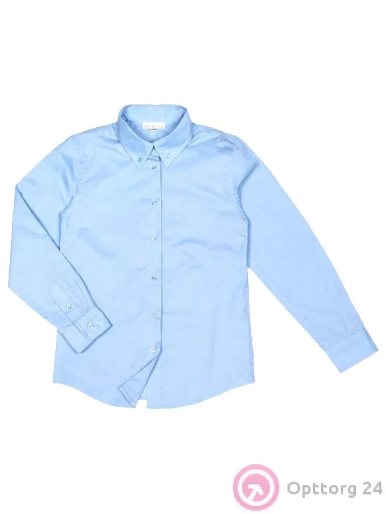 Детская рубашка школьная форма голубых оттенков с камрманом в области груди.
