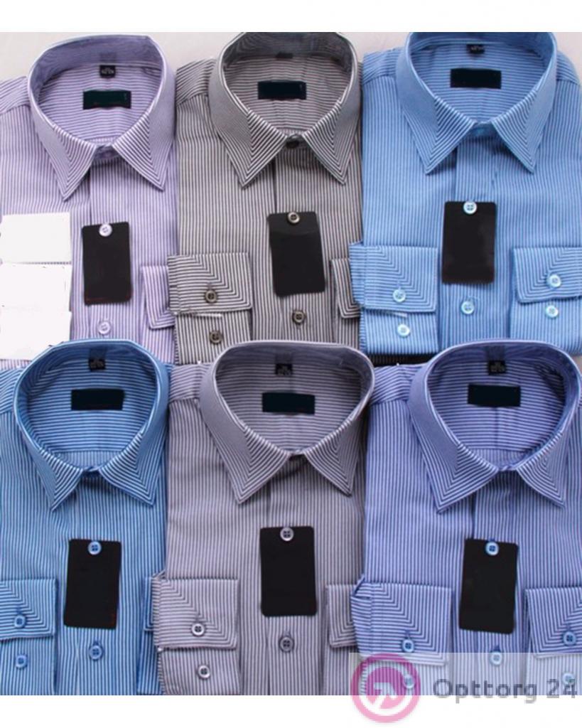 Сорочка для мальчика в полоску сине-сереневых тонов оптом