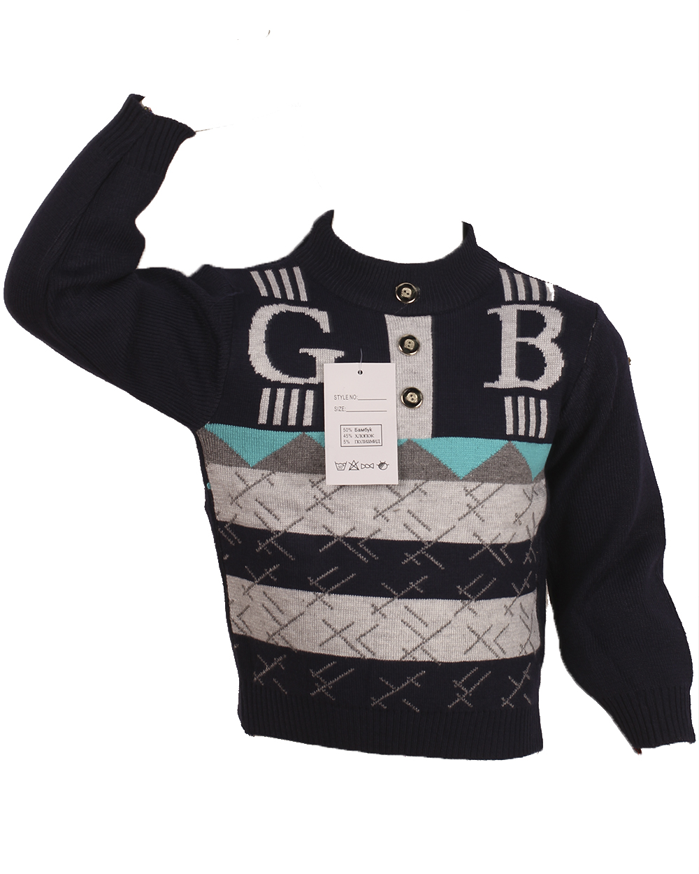 Детский джемпер в горизонтальную полоску с надписями на груди.