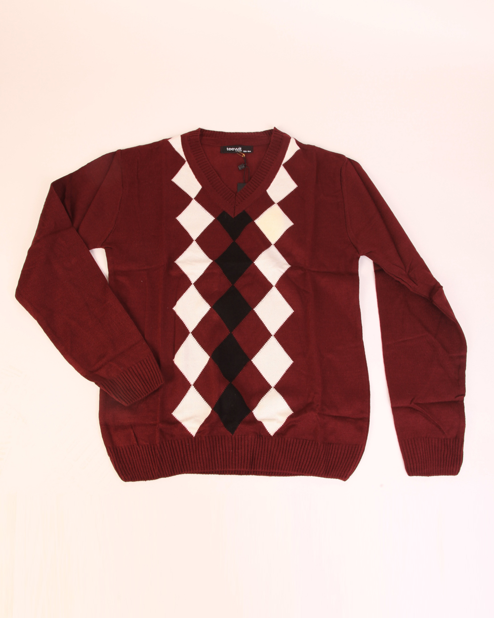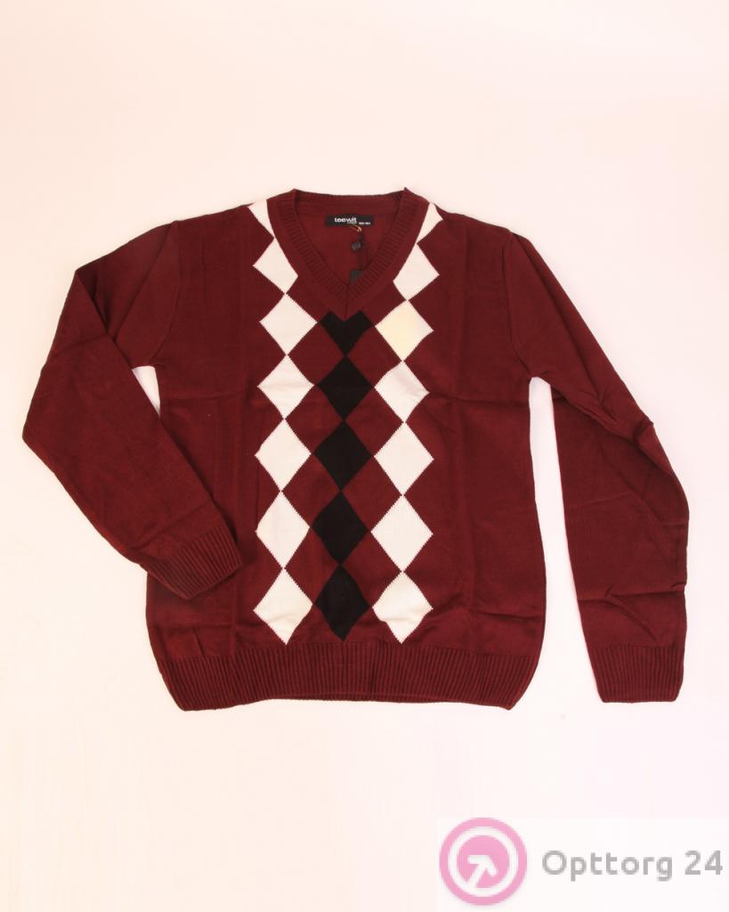 Свитер детский бордовый с узором оптом