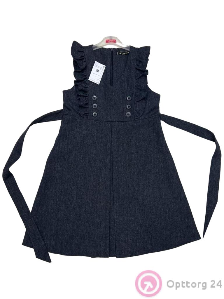 Темно-серый школьный сарафан для девочки с рюшами оптом