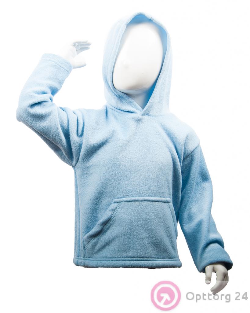 Толстовка детская из флиса с капюшоном светло-голубая оптом